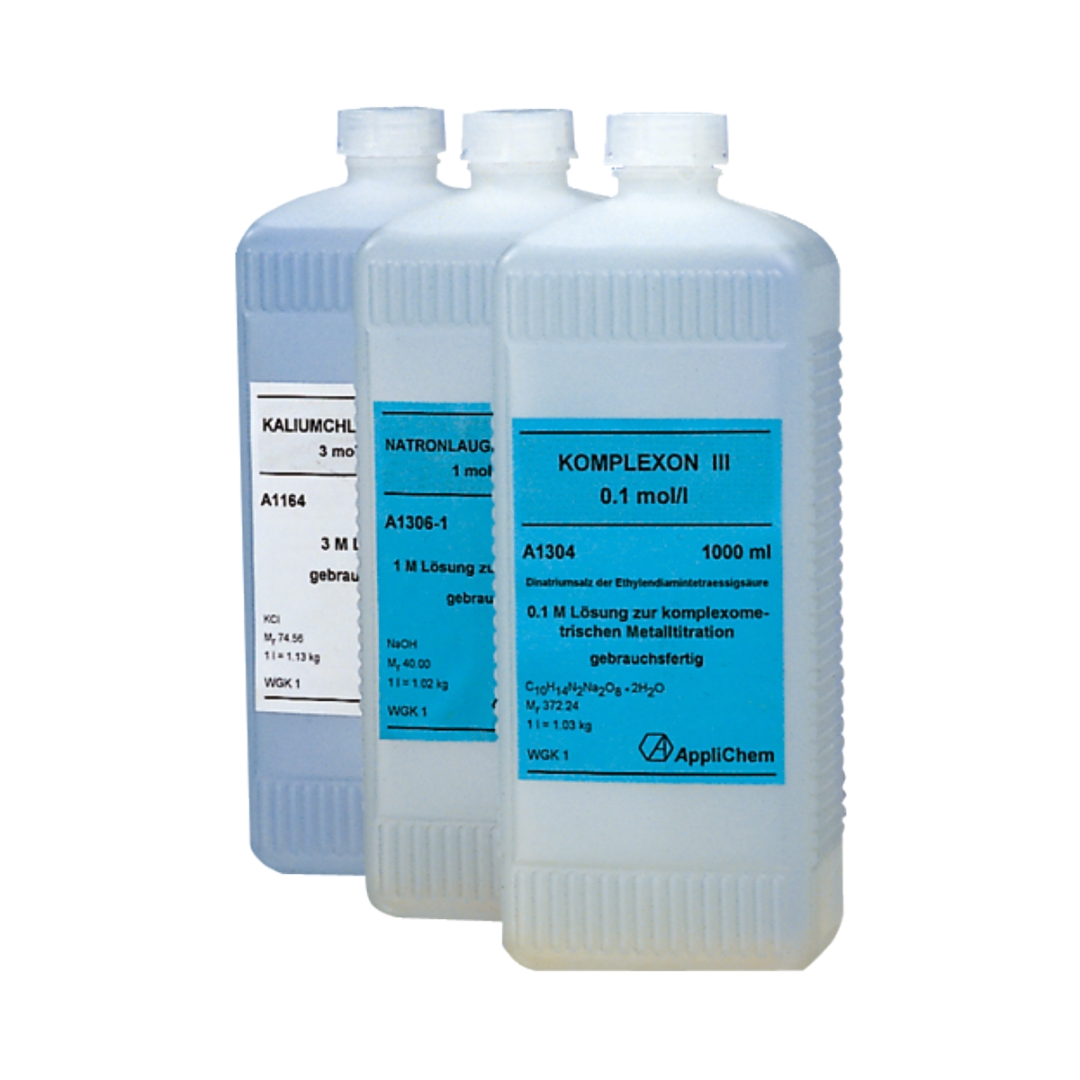 Roztwory do przechowywania, neutralizowania i miareczkowania kompleksów metali – gotowe do użycia, odczynnik kompleksujący „Komplekson III” stosowany jest w kompleksometrii do oznaczania ilościowego jonów metali.