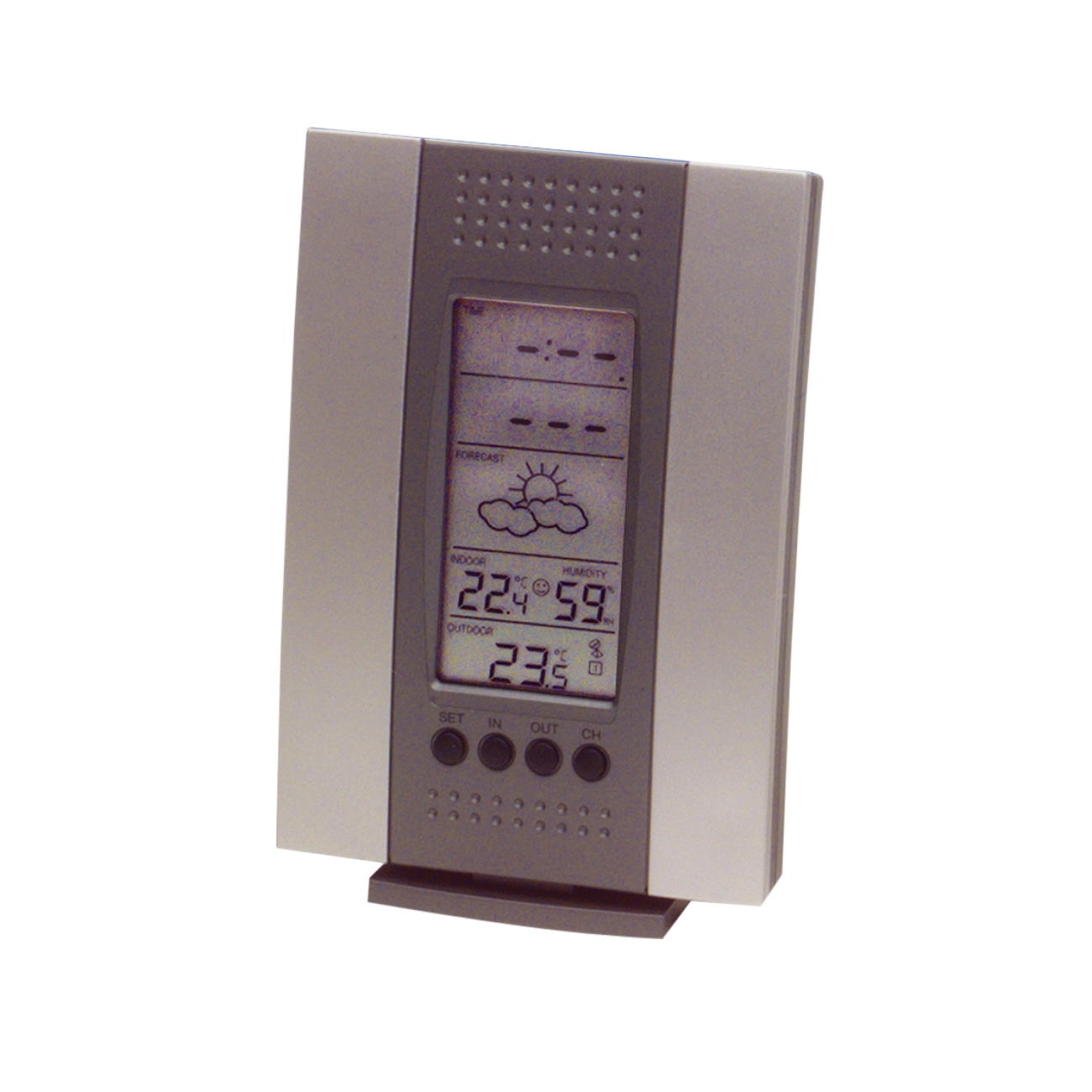 Stacja meteorologiczna z nadajnikiem radiowym. Bezprzewodowy przekaz dzięki zewnętrznej jednostce nadawczej. Zasięg ok. 20 metrów. Służy do pomiaru temperatury zewnętrznej, temperatury wewnętrznej i wilgotności powietrza. Posiada wskaźniki wartości maksymalnej/minimalnej, prognozy pogody wyrażanej symbolami i tendencji ciśnienia atmosferycznego.