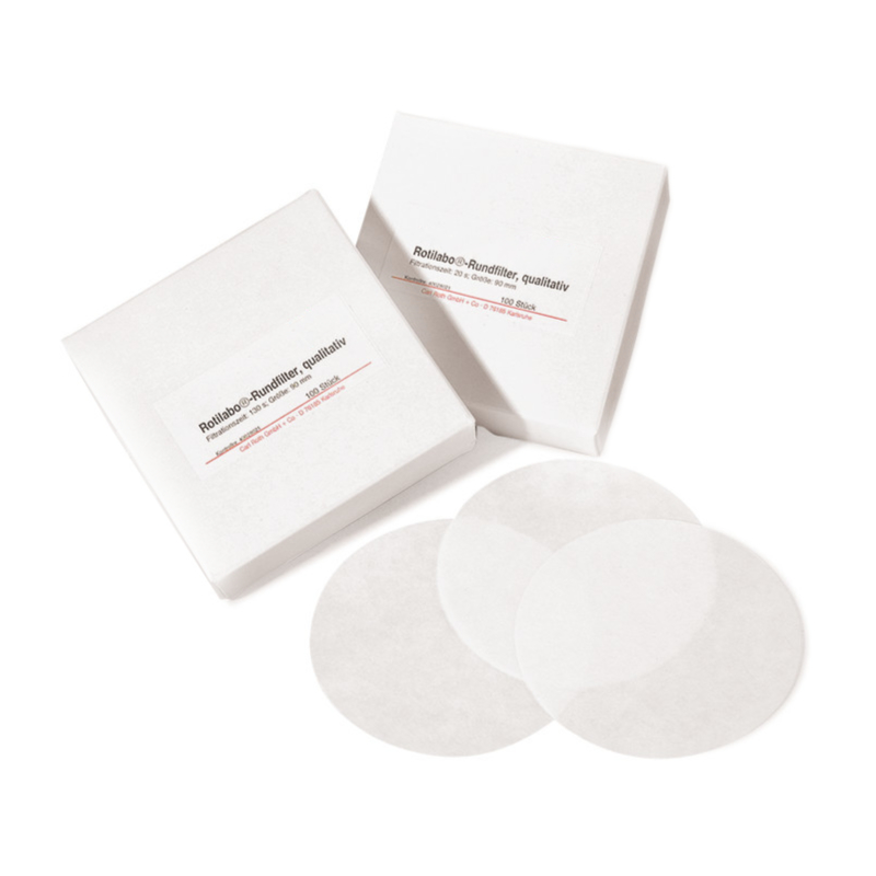 Okrągłe filtry bibułowe do analizy ilościowej. Wykonane w całości z celulozy.