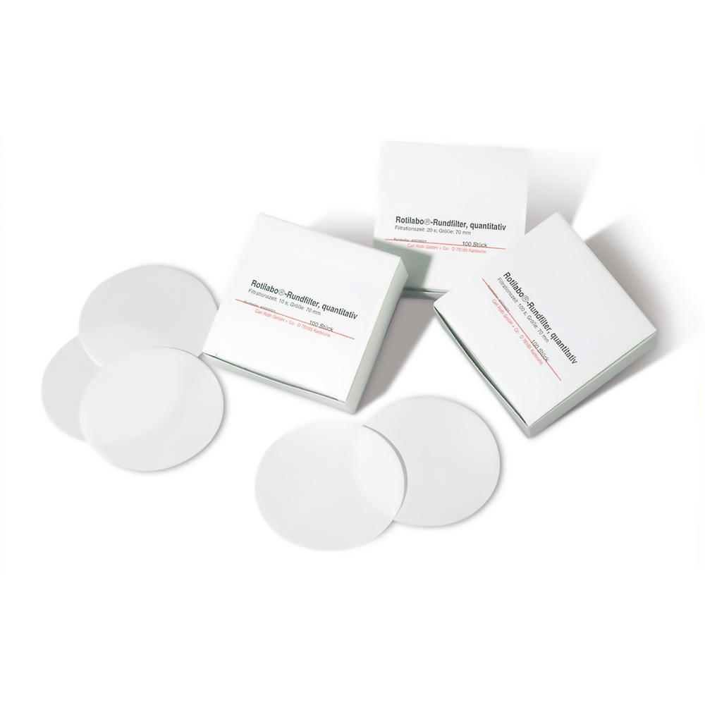 Filtr okrągły do analiz ilościowych. Bardzo dobra jakość. Szybka filtracja. Nie zawiera popiołu.