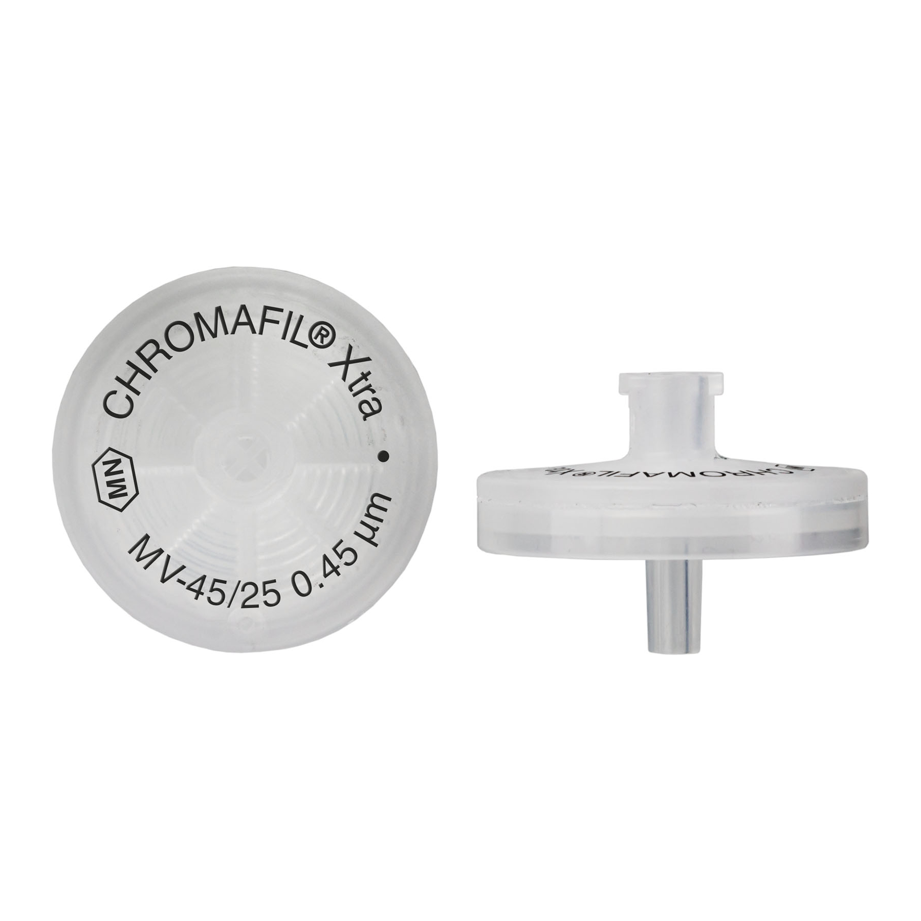 Filtry strzykawkowe Chromafil z membraną z mieszanych estrów celulozy o średnicy porów 0,45 lub 0,20 µm. Dedykowane do roztworów wodnych i organicznych, szczególnie o wysokiej polarności i hydrofilowych. Doskonałe do oczyszczania próbek przed analizami chromatograficznymi. Dostępne w wersji niesterylnej w opakowaniach po 100 lub 400 szt. Szczelna obudowa z PP. Autoklawowalne w 121°C.