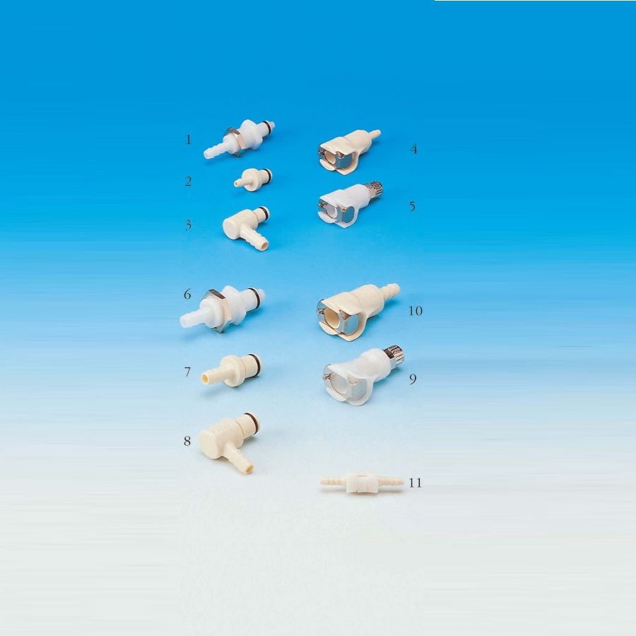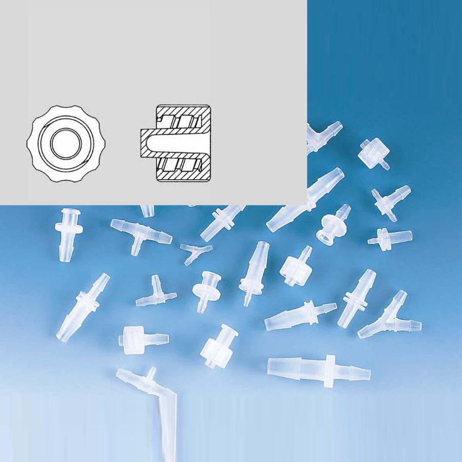 Łączniki przeznaczone do węży o różnych średnicach (od 5-17 mm średnicy wewnętrznej węża). Wykonane z polipropylenu. Odporne na działanie substancji chemicznych. Autoklawowalne w temperaturze do 121°C.