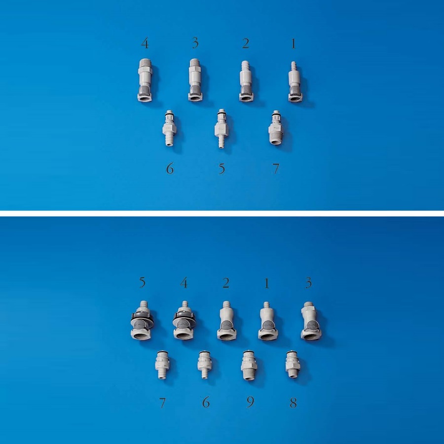 Nieprzeciekające, niezawodne połączenie węży z tworzyw sztucznych do płynów, powietrza i gazów. Do elastycznych węży. Posiadają część męską i żeńską, pierścień typu O-Ring z zamykaniem poprzez przekręcenie. Połączenia węży są proste, praktyczne i ekonomiczne, możliwa jest szybka i bezproblemowa wymiana części.