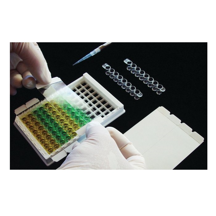 Paski do zamykania wykonane z poliestru, sterylne lub niesterylne. Samoprzylepne. Perforowane końce ułatwiające szybkie i łatwe naklejanie. Paski do zamykania jednego lub dwóch rzędów próbek, oraz do zamykania przekłutych folii. Minimalizują ewaporację i kontaminacje krzyżowe.