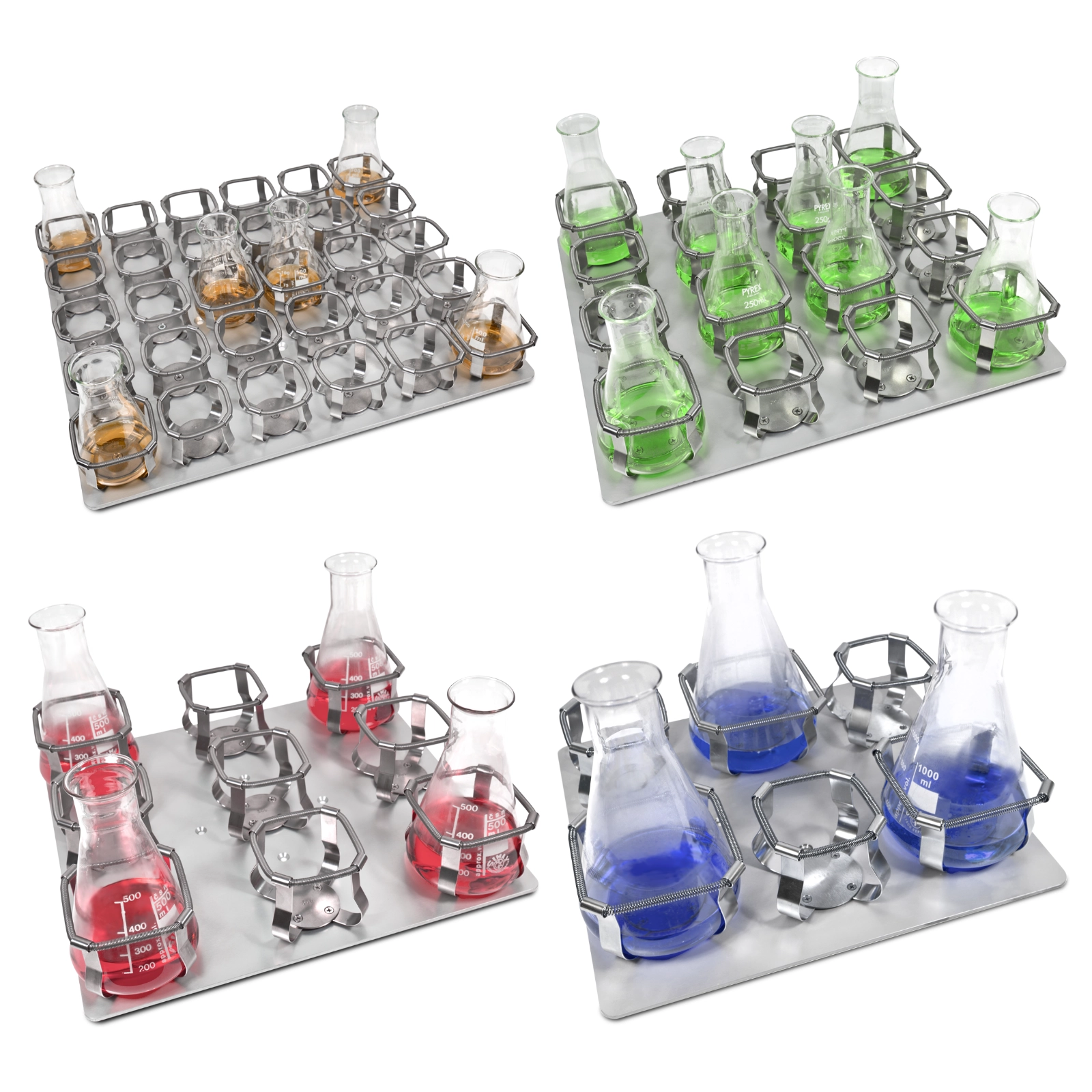 Zestawy platform z koszyczkami na kolby i butelki o różnych pojemnościach kompatybilne z inkubatorem z wytrząsaniem ES-20/80 (K-7974).