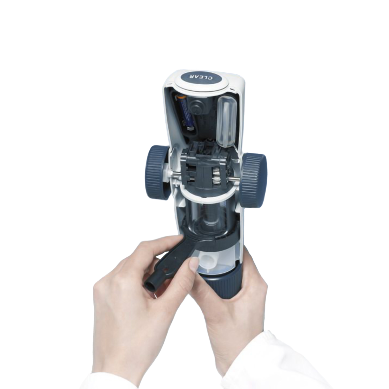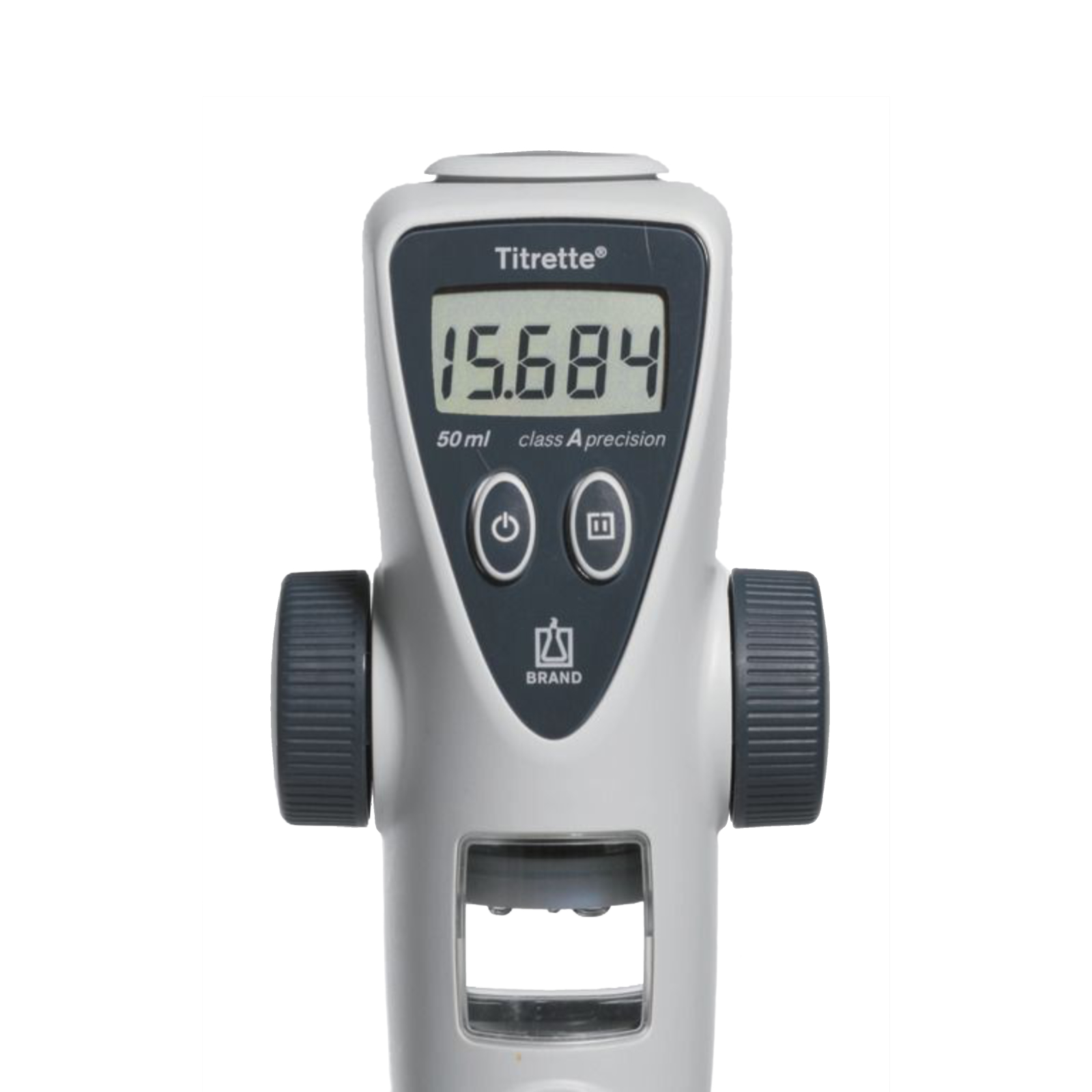 Biureta Titrette® umożliwia szybkie i niezawodne miareczkowanie. Można nałożyć ją bezpośrednio na butelkę z odczynnikiem – pasuje do gwintu GL45 (a po zastosowaniu adapterów także do butelek o innych gwintach). Odznacza się wysoką dokładnością, pozwalającą na precyzyjne miareczkowanie w obrębie granic błędu klasy A według DIN EN ISO 385. Przyrząd cechuje się kompaktową konstrukcją, jest lekki i stabilny. Dodatkowym atutem biurety jest łatwość obsługi, bez konieczności przełączania między funkcją napełniania a miareczkowania. Posiada czytelny wyświetlacz cyfrowy oraz oddzielne przyciski wyłączania i włączania. Posiada zawór zwrotny odpowietrzający SafetyPrime™, umożliwiający szybkie odpowietrzanie z minimalnymi stratami medium. Z możliwością ustawiania wylewki zarówno w pionie, jak i w poziomie. Biureta może być użytkowana w zakresie temperatur od +15ºC do +40ºC.