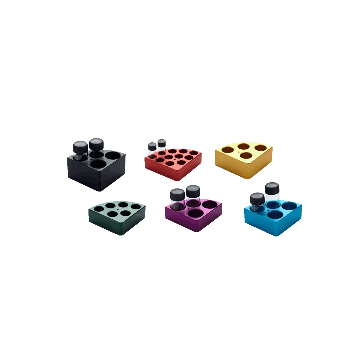 Bloki o różnej średnicy otworów. Przeznaczone do ogrzewania probówek. Nadają się do nakładania na płyty grzejne i mieszadła magnetyczne.