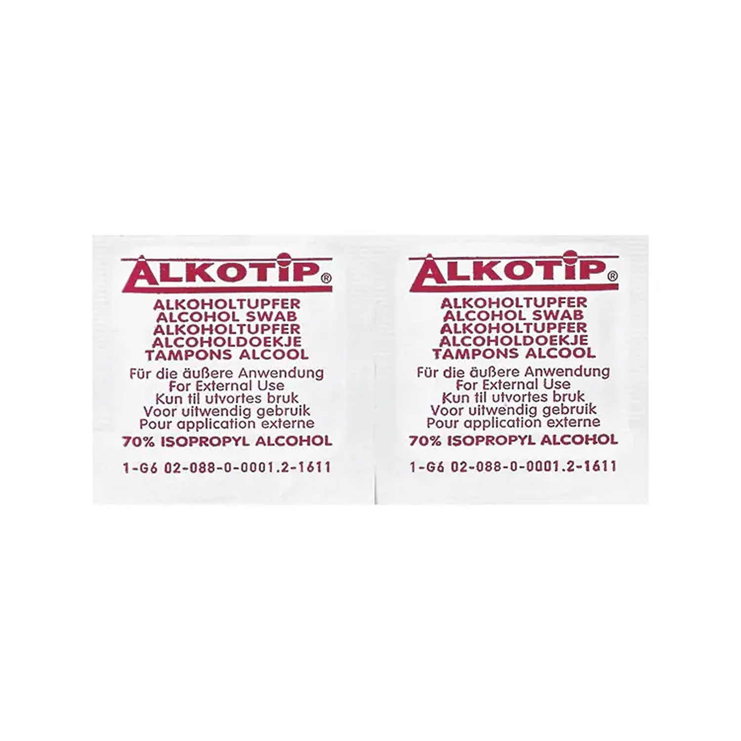 Chusteczki Alkotip® wykonane z mikrowłókien. Zawierają 70% alkoholu izopropylowego dla łagodnej dezynfekcji. Nie strzępią się. Nadają się także do odkażania skóry przed zastrzykami. Dla ochrony przed wysuszeniem dostarczane w oddzielnych perforowanych torebkach z wewnętrzną powłoką aluminiową zabezpieczającą przed utratą wilgotności.
