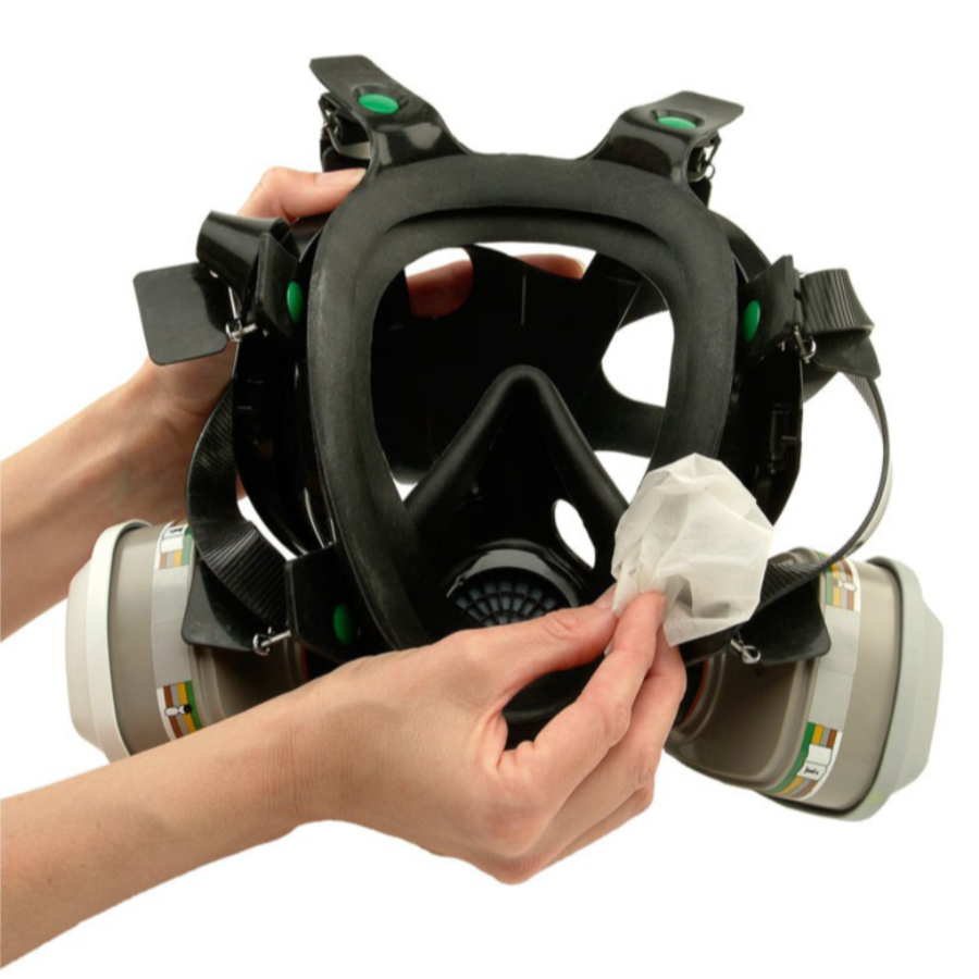 Dezynfekujące chusteczki do czyszczenia maski ochronnej. Opakowanie zawiera 10 sztuk. Pasują do półmaski ochronnej 3M – seria 4000.