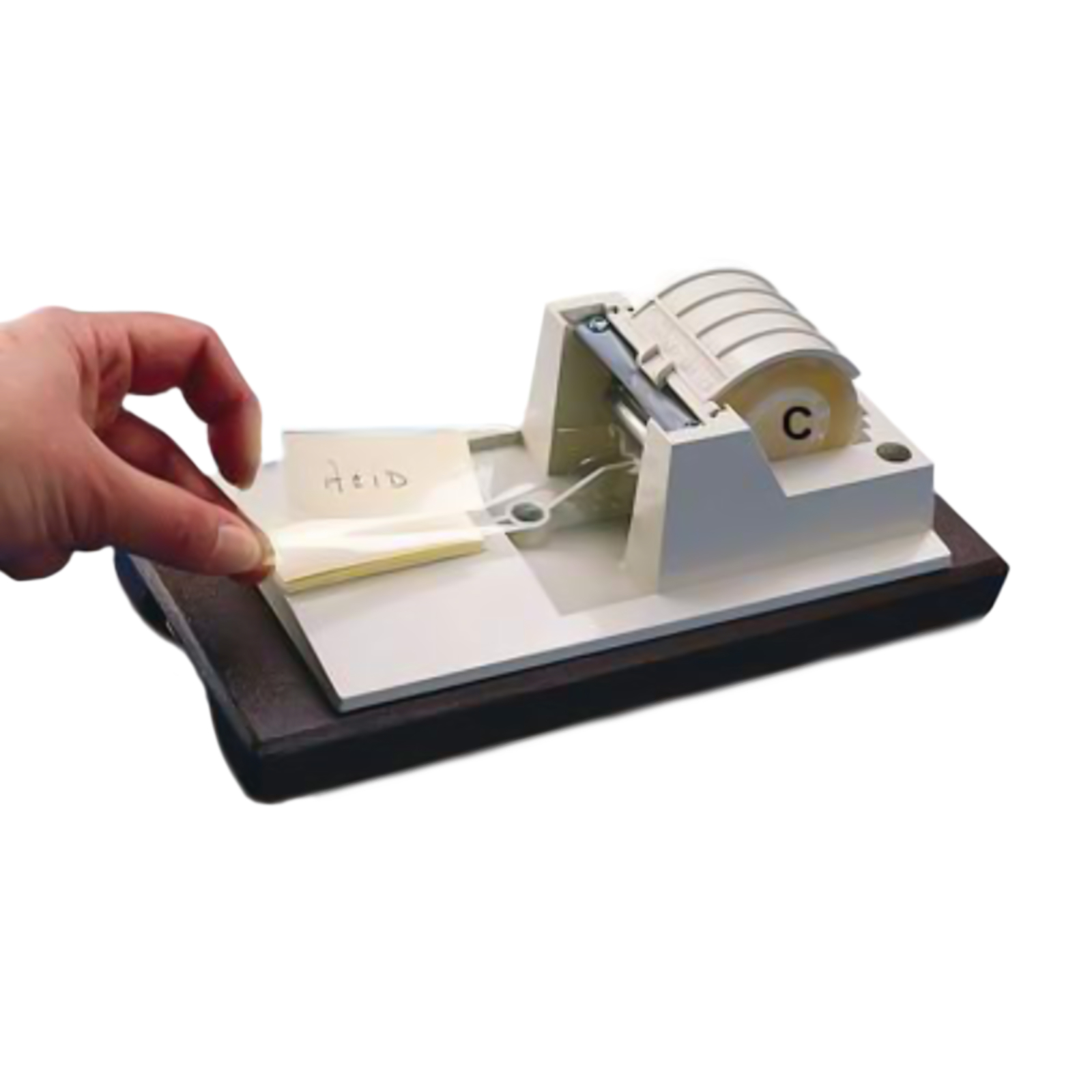 Solidny dozownik wykonany z tworzywa sztucznego ABS ze stalową końcówką tnącą. Stabilny wałek zapewnia łatwe i sprawne rozwijanie taśmy, a specjalna osłona zabezpiecza ją przed uszkodzeniem.