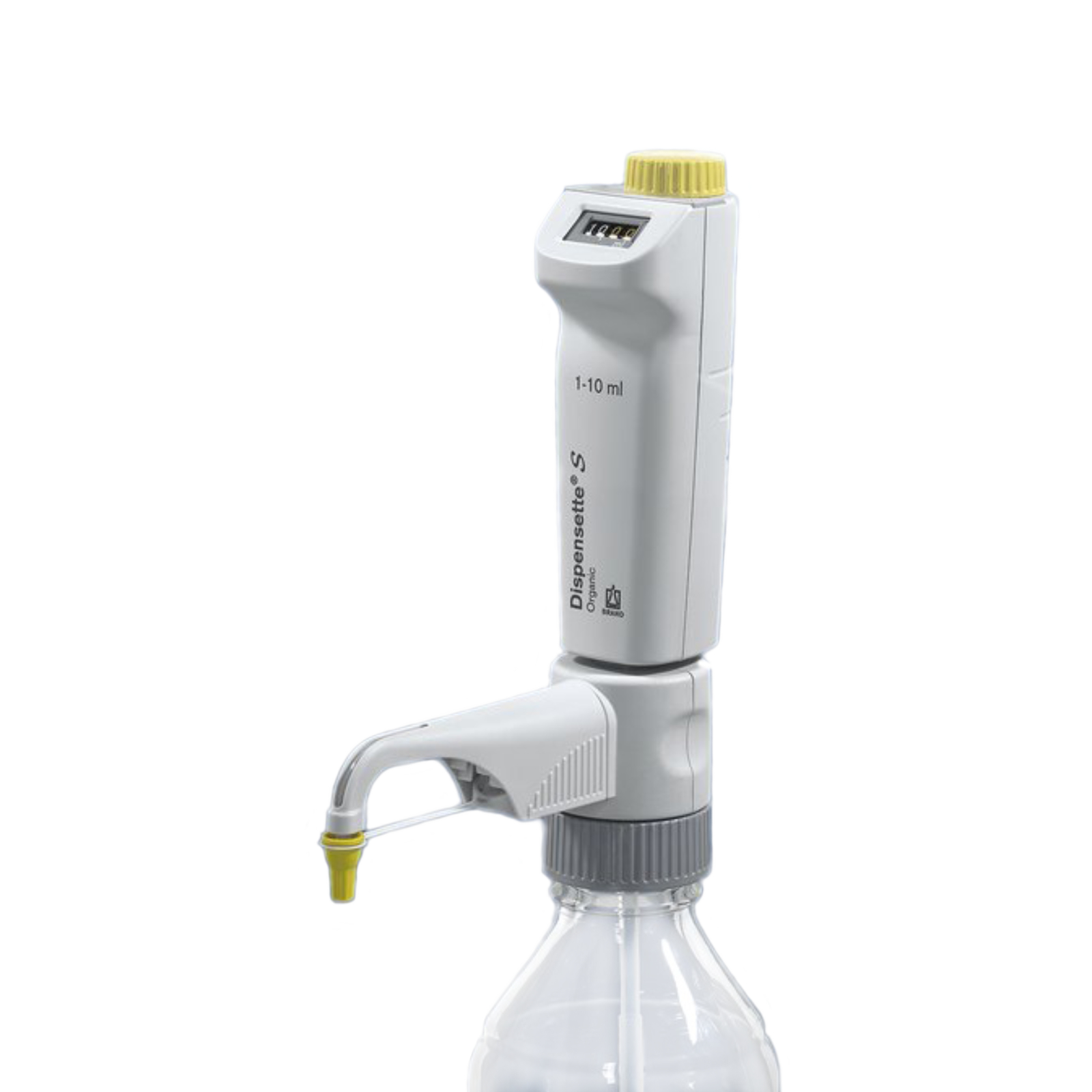 Dozowniki butelkowe nowej generacji Dispensette® S Organic Digital o regulowanej objętości z cyfrowym wskaźnikiem to urządzenia o szerokim spektrum zastosowań. Umożliwiają dozowanie cieczy bezpośrednio z butelki z odczynnikiem, którą można obracać o 360°. Zaprojektowane bez konieczności użycia uszczelek. Łatwe w czyszczeniu (możliwość rozłożenia urządzenia bez używania specjalistycznych narzędzi). Uproszczony montaż wylewki. W przypadku demontażu wylewki następuje automatyczne zamknięcie wypływu. Dozowniki są w całości autoklawowalne w 121°C. Łatwa kalibracja i regulacja w celu zapewnienia zgodności z wytycznymi ISO 9001 i GLP. Doskonale nadają się do stosowania z rozpuszczalnikami organicznymi, np. chlorowanymi i fluorowanymi węglowodorami lub stężonymi kwasami HCl i HNO₃, kwasem trójfluorooctowym, tetrahydrofuranem, czy nadtlenkami. Części mające kontakt z cieczą wykonane są z następujących materiałów: szkło borokrzemowe, ceramika-Al₂O₃, tantal, ETFE, FEP, PFA i PP (zakrętka).
