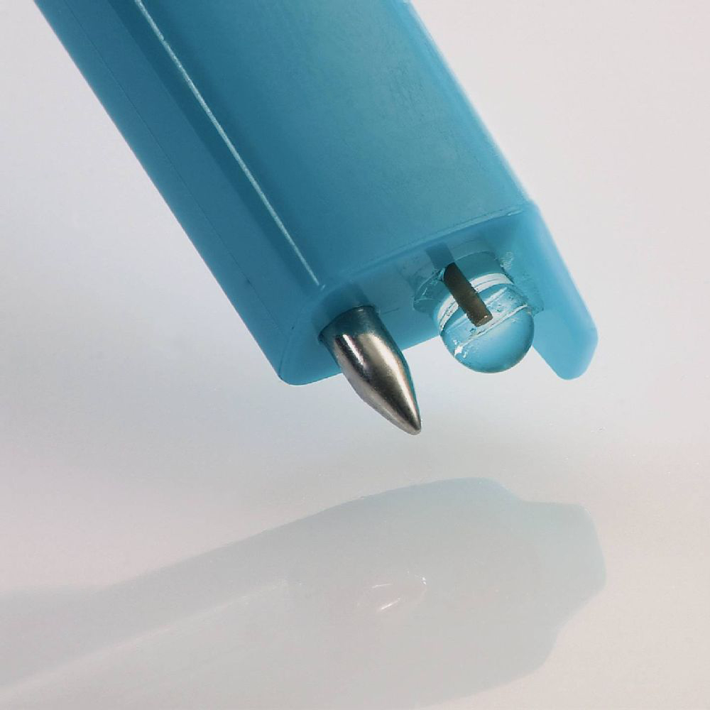 Łatwa w wymianie zapasowa elektroda do pH-metru Testo 206-pH1 z pojemnikiem do przechowywania wypełnionym żelem z KCl. Łączy elektrodę żelową do pomiaru pH oraz sondę temperatury NTC w jednej końcówce pomiarowej. Dzięki połączeniu tych dwóch funkcji pomiarowych możliwy jest pomiar pH próbki z automatyczną kompensacją temperatury.
