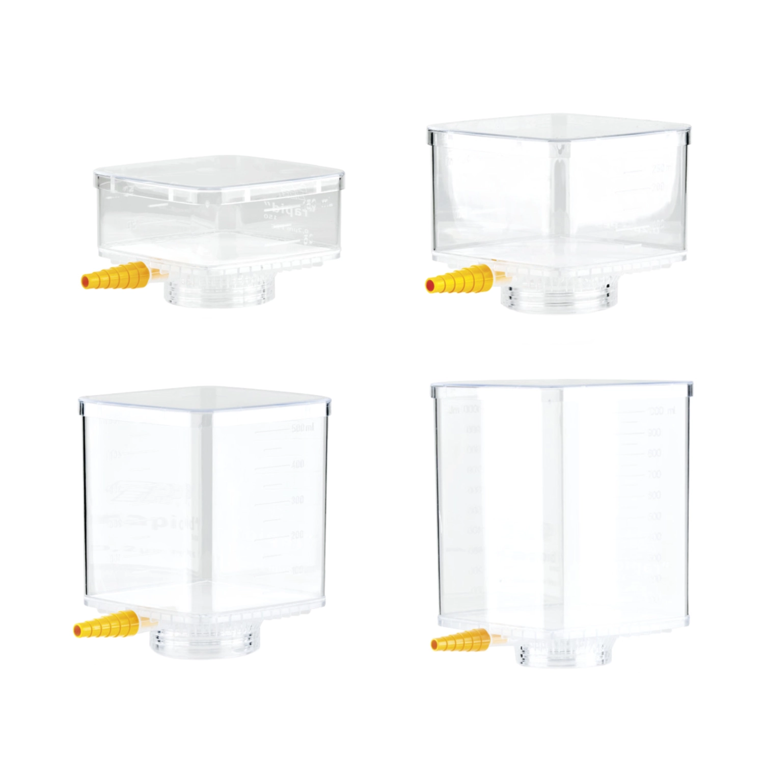Nasadki filtrujące na butelki rapid Filtermax. Przeznaczone dla objętości 150 ml, 250 ml, 500 ml, 1000 ml. Z membraną z tworzywa PES o wielkości porów 0,22 µm wykazującą niską zdolność wiązania białek i umożliwiającą wyjątkowo dużą prędkość przepływu. Kwadratowe filtry dają o 20% więcej powierzchni filtracji niż porównywalne filtry okrągłe. Podziałka ułatwia odczytanie objętości substancji filtrowanej. Z gwintem GL45. Jako źródło podciśnienia mogą być stosowane pompy lub zbiorniki ciśnieniowe. Produkty sterylizowane promieniami gamma, wolne od pirogenów, RNA DNA, RNaz, DNaz. Pakowane indywidualnie.