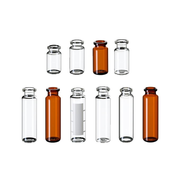 Fiolki posiadają ścięty brzeg Headspace lub płaski wywinięty brzeg wg DIN. Ścięty brzeg Headspace może być potrzebny przy niektórych systemach specjalnych zamknięć (Perkin Elmer). Z kolei krążki uszczelniające mają większą powierzchnię styczności na płaskim wywiniętym brzegu wg DIN. Fiolki mają różną długość szyjki. Wykonane są z przeźroczystego lub brązowego szkła. Z polem na opis i oznaczeniami poziomu napełnienia lub bez pola na opis i bez oznaczeń poziomu napełnienia.