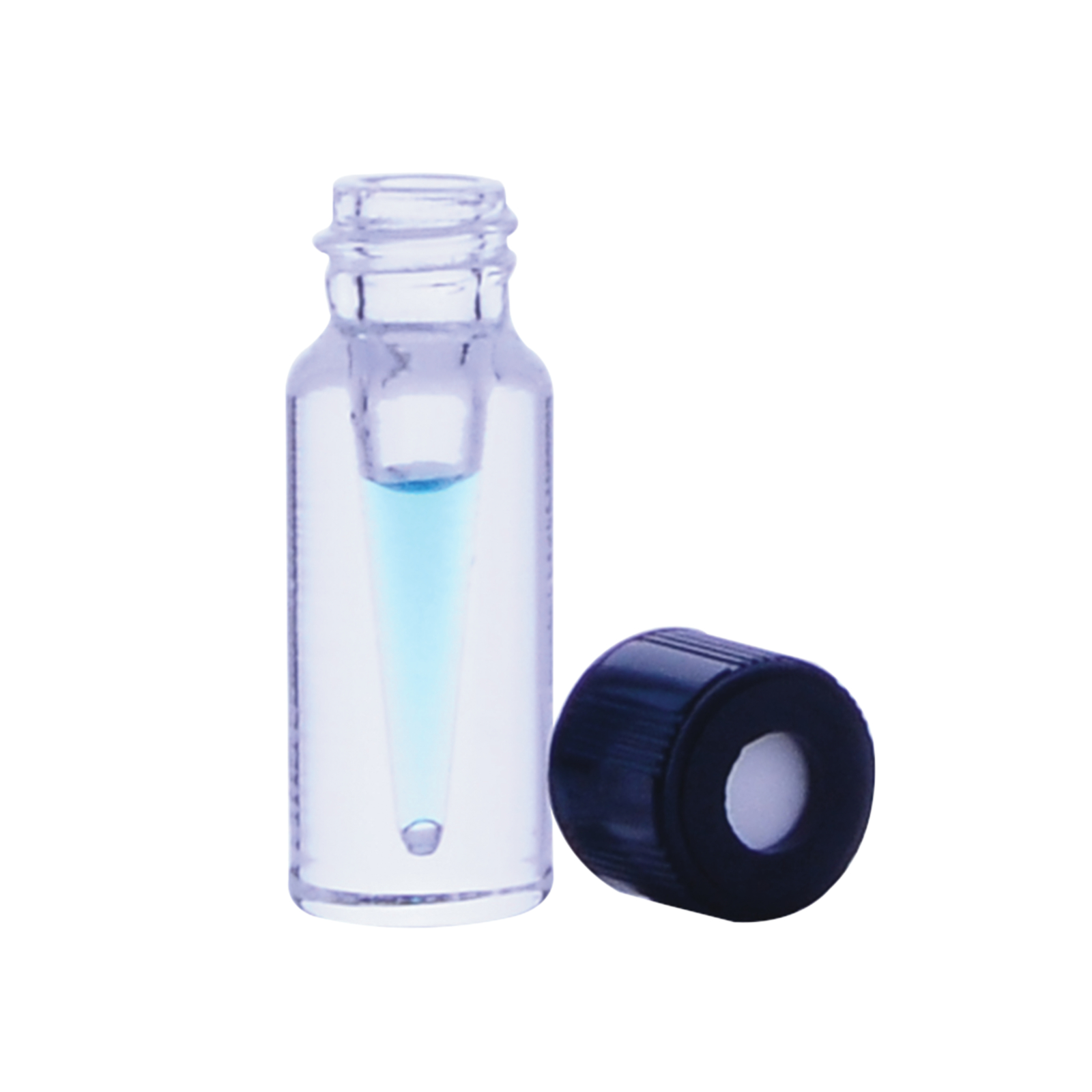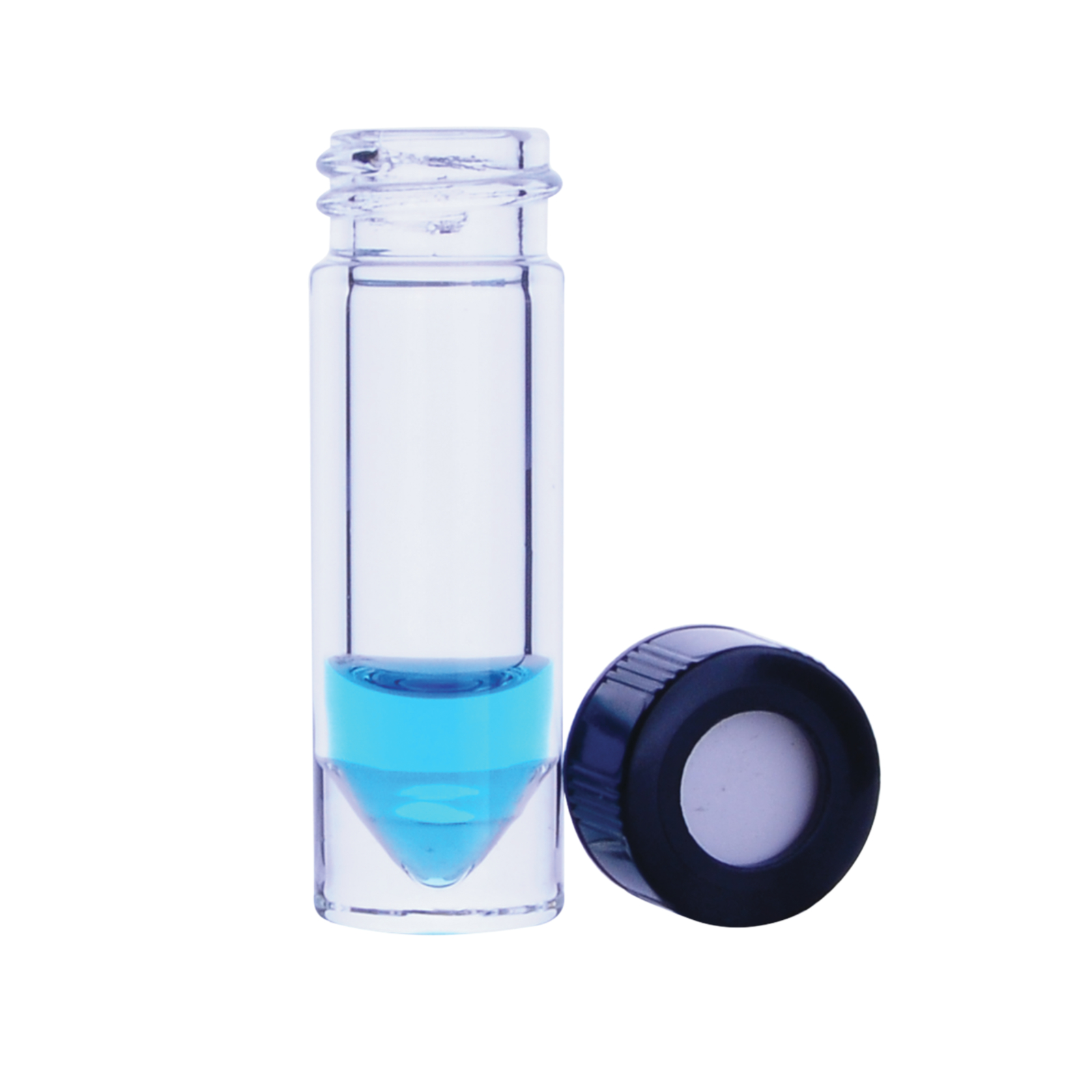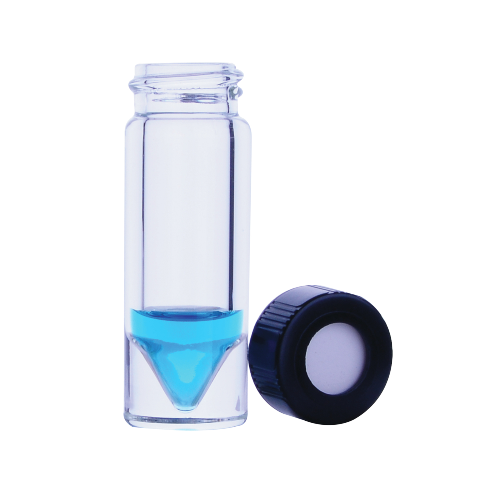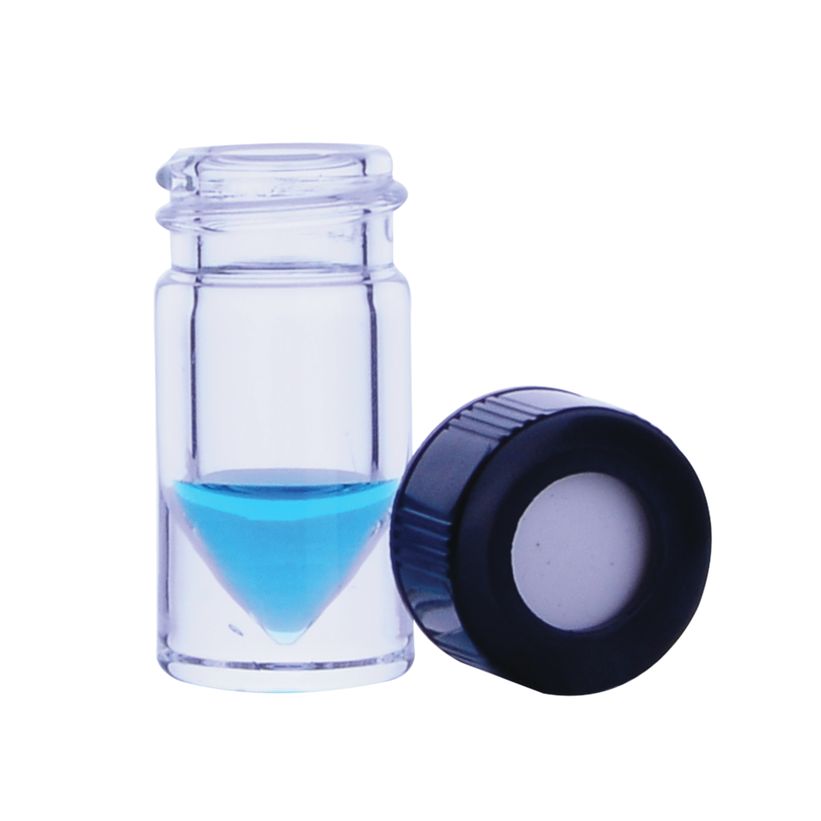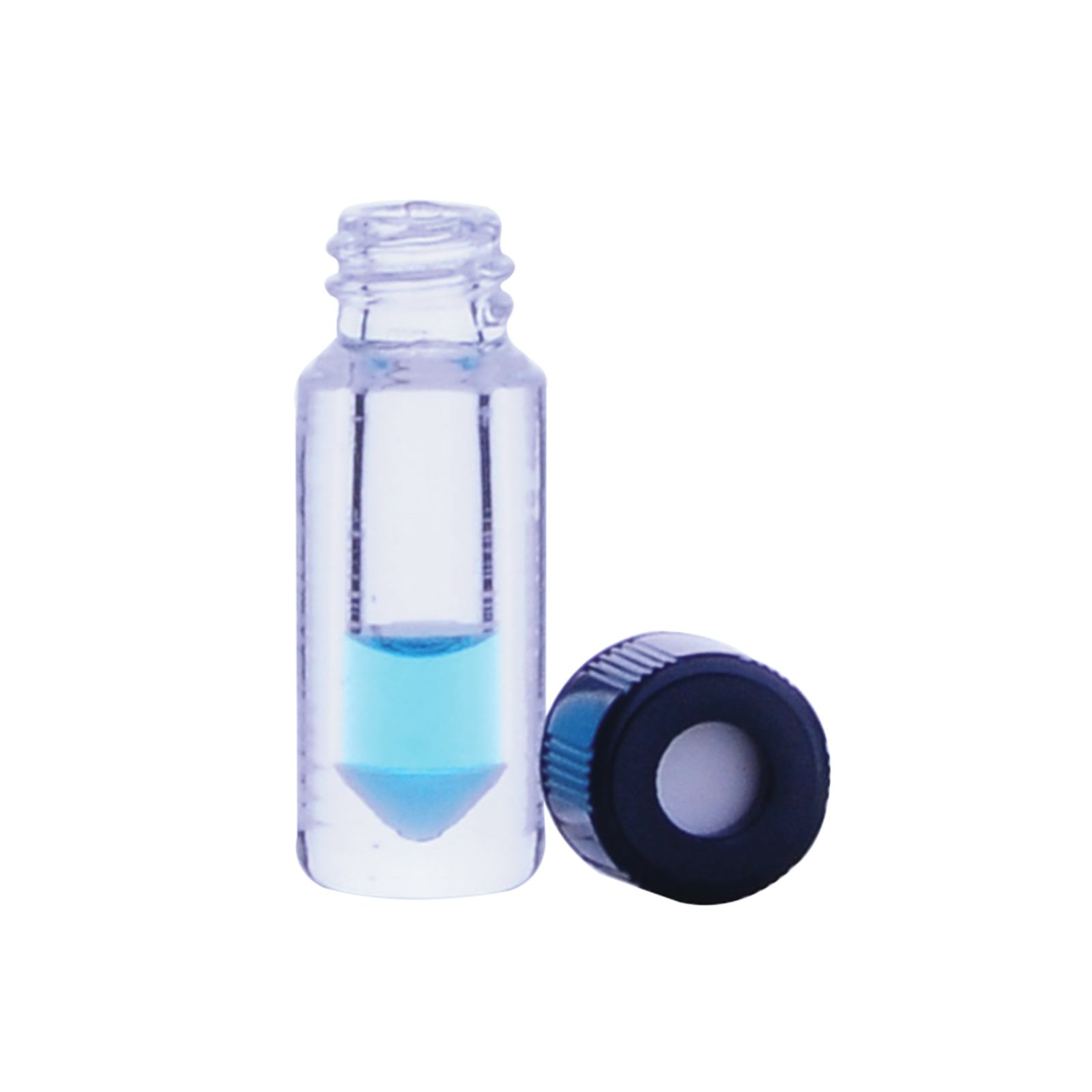 Fiolki NextGen™ V Vials wykonane ze szkła borokrzemowego. Wyróżnia je stożkowe dno ułatwiające pracę z małymi objętościami. Dostarczane w komplecie z czarnymi zakrętkami fenolowymi z otworem i septą z PTFE/silikonu. Fiolki nie mają nadrukowanej skali.