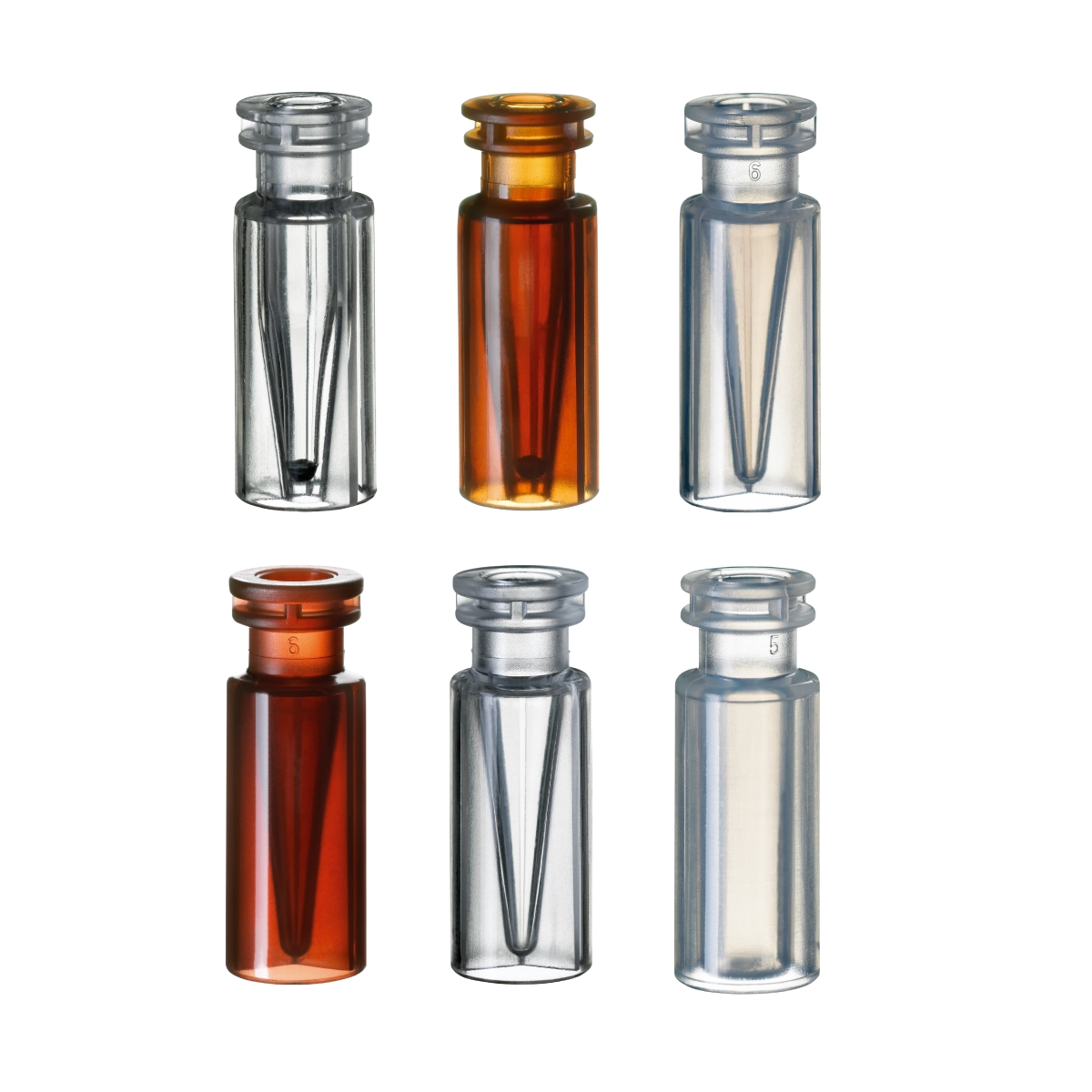 Wykonane z tworzywa sztucznego – TPX lub PP. W wersji ze zintegrowanym mikrowkładem lub bez. Fiolki mogą być zamykane za pomocą kapsli zatrzaskowych 11 mm.