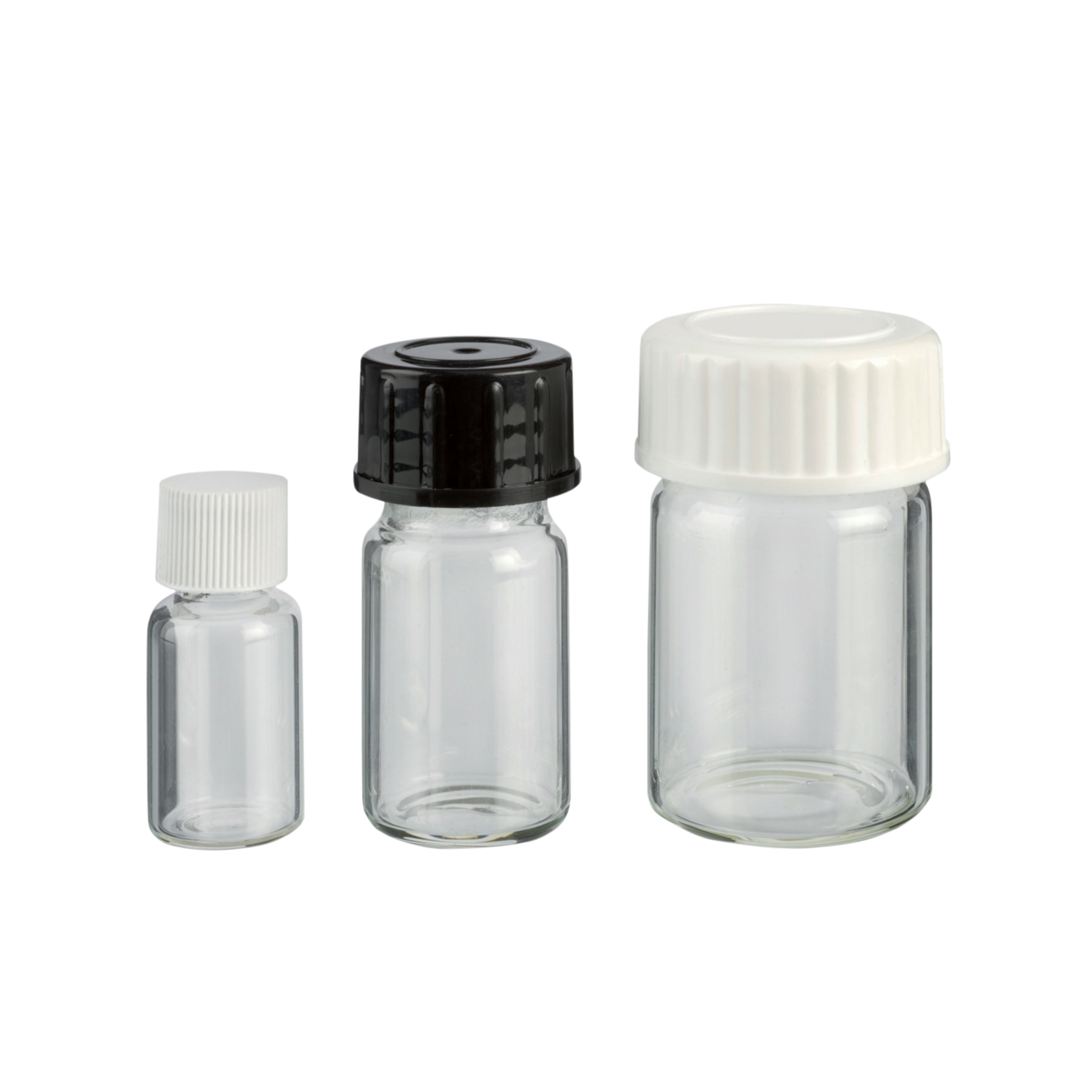 Wykonane z przeźroczystego szkła. Z zakrętką gwintową z tworzywa sztucznego. Do bezpiecznego przechowywania małych ilości. Większe fiolki (Nr-Art. 2-1007) posiadają szeroką szyjkę, dzięki czemu doskonale nadają się do przechowywania substancji stałych. Opakowanie zawiera 100 sztuk.