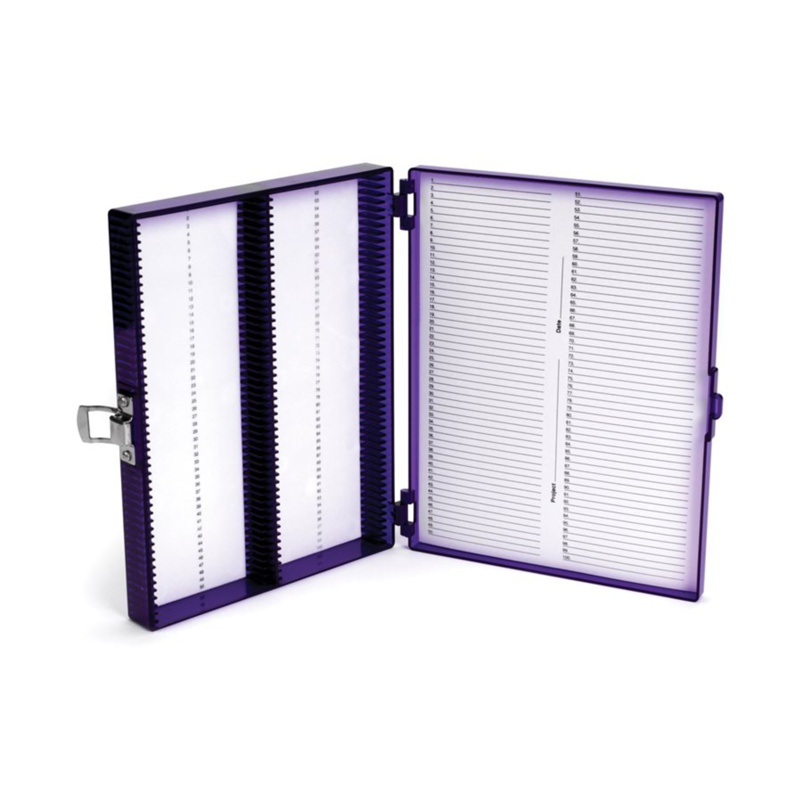 Kasetka na szkiełka mikroskopowe do niskich temperatur True North® wykonana z poliwęglanu. Umożliwia przechowywanie do 100 szkiełek podstawowych w temperaturze -80 °C.