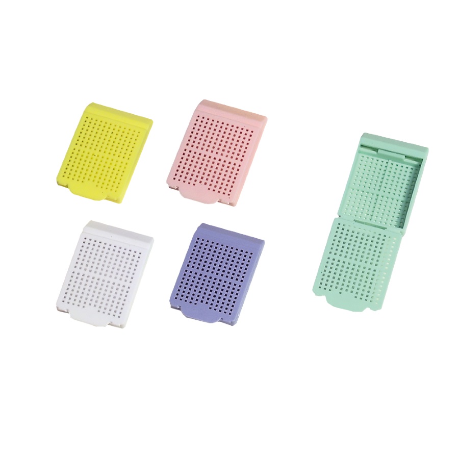 Wykonane z polimeru o wysokiej gęstości. Przeznaczone do zatapiania lub przechowywania preparatów tkankowych. Prostokątne otwory o wielkości 1 mm usprawniają wymianę cieczy i optymalizują zatapianie. W celu zamknięcia kasetki, należy odłamać załączoną pokrywkę, a następnie nałożyć ją i zatrzasnąć na dolnej części kasetki. Kasetki mogą być wielokrotnie otwierane i zamykane. Odporne na działanie rozpuszczalników. Z dużym polem na opis.