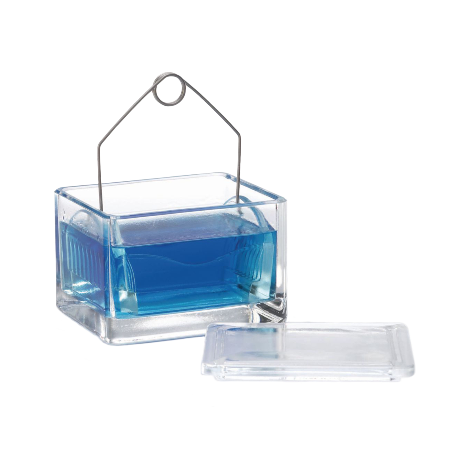 Komora i wkład na szkiełka wykonane są ze szkła sodowo-wapniowego. Drut wykonany ze stali nierdzewnej. Wkład pomieści 10 szkiełek podstawowych o maks. wym. 76 x 26 mm. Można jednocześnie barwić nawet 20 szkiełek podstawowych umieszczając po 2 sztuki (spodami do siebie) w każdym otworze wkładu.
