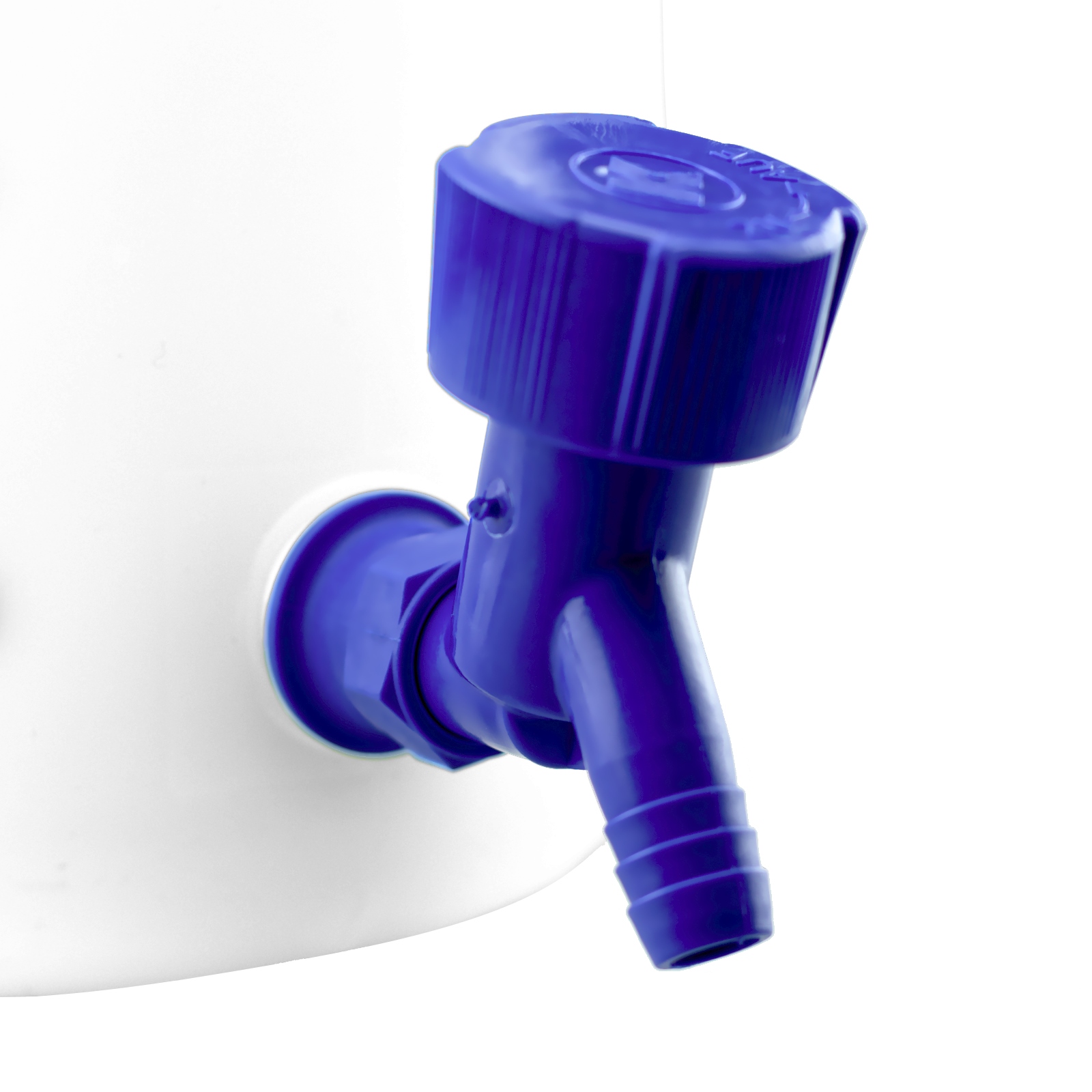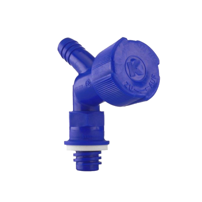 Kran do butli z otworem gwintowanym. Wykonany z HDPE. Dostarczany w zestawie z uszczelką zapewniającą szczelność połączenia butli i kranu. Wyposażony w specjalny rodzaj gwintu stosowany w butlach marki Kautex.