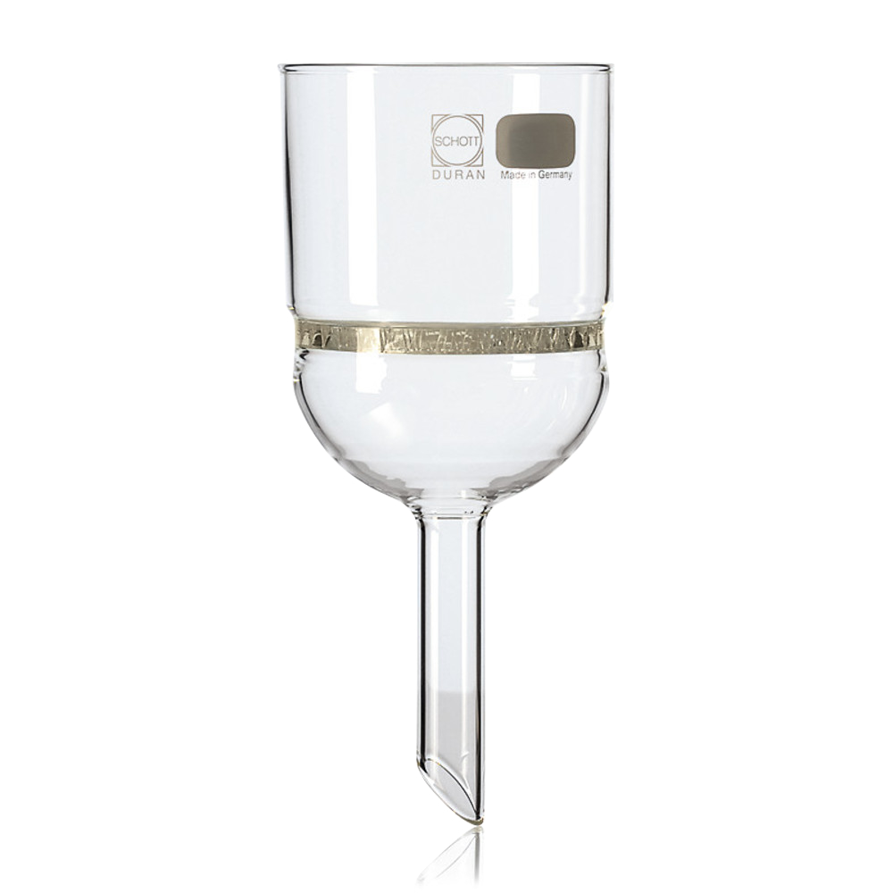 Lejki Büchnera wykonane w całości ze szkła Duran. Wysoka odporność chemiczna i mechaniczna. Dostępne w 4 rozmiarach o różnej pojemności i dedykowane do różnej średnicy sączków. W połączeniu z filtrami bibułowymi lub membranowymi pozwalają na szybką i precyzyjną filtrację.