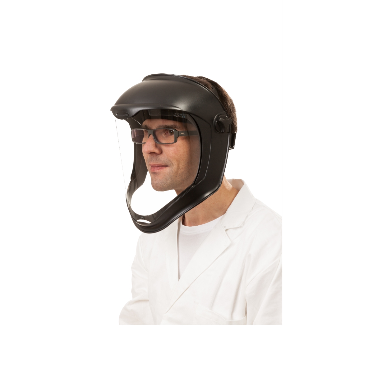 • duży ekran z poliwęglanu dla maksymalnej widoczności, zapewniający ochronę przed promieniowaniem UV oraz rozpryskami cieczy; odporny na zarysowania i uderzenia,