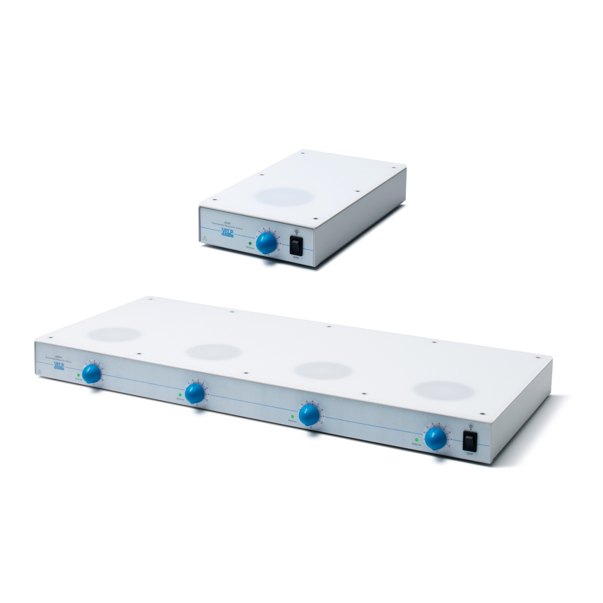 Mieszadła magnetyczne serii AMI z podświetleniem, z regulacją prędkości mieszania do 1100 obr./min i maksymalną objętością mieszanej cieczy do 5 l (na jednym stanowisku). Dzięki podświetleniu, polecane są zwłaszcza do miareczkowania i kolorymetrycznego oznaczania reakcji. Mieszadła te charakteryzuje ponadto bardzo dobra regulacja prędkości – również przy niskich wartościach. Model AMI 4 może jednocześnie mieszać zawartość do 4 naczyń – prędkość jest regulowana niezależnie dla każdego z czterech pól.