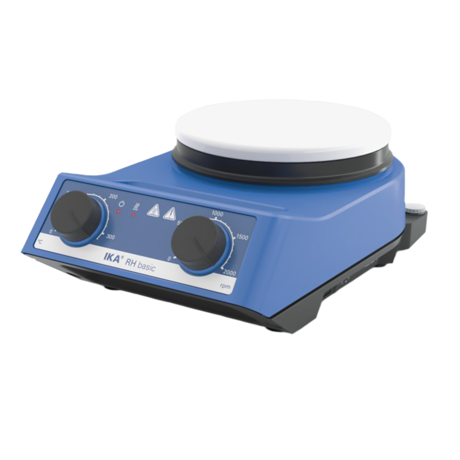 Ekonomiczne mieszadło magnetyczne RH basic i RH basic white z funkcją grzania. Przyłącze DIN 12878 umożliwia podłączenie elektronicznego termometru termometru kontaktowego (np. ETS-D5 lub ETS-D6). Zanurzenie czujnika bezpośrednio w mieszanym i podgrzewanym ośrodku umożliwia bardzo precyzyjną regulację i kontrolę temperatury.