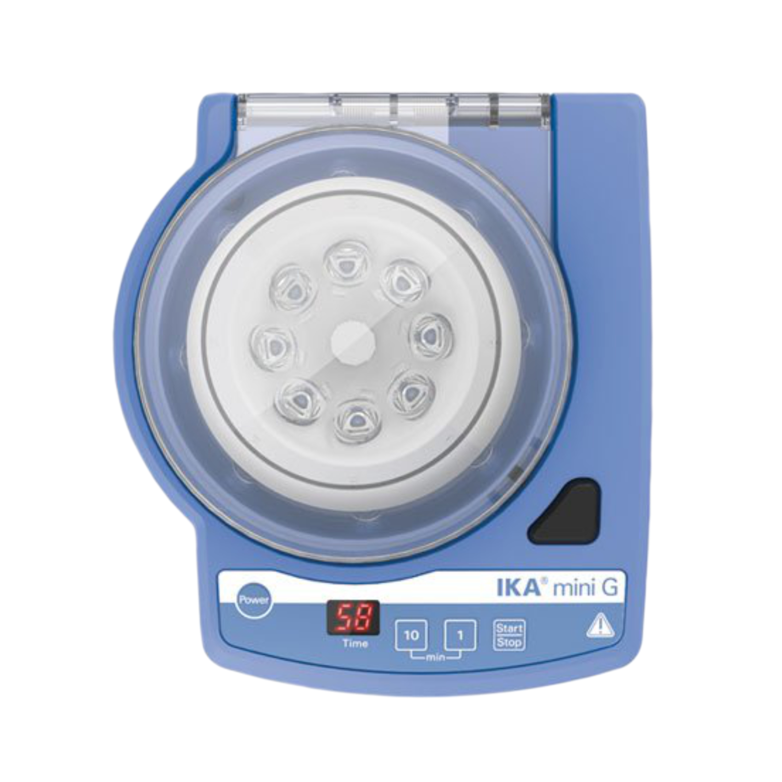 Miniwirówka IKA mini G z cyfrowym wyświetlaczem. Regulacja czasu działania od 1 do 99 min. Łatwo wymienialny rotor. W zestawie standardowy wirnik na 8 probówek reakcyjnych 1,5/2,0 ml, wirnik na 4 paski probówek PCR (8 probówek 0,2 ml na pasek) oraz adaptery do probówek reakcyjnych 0,2/0,4/0,5 ml.