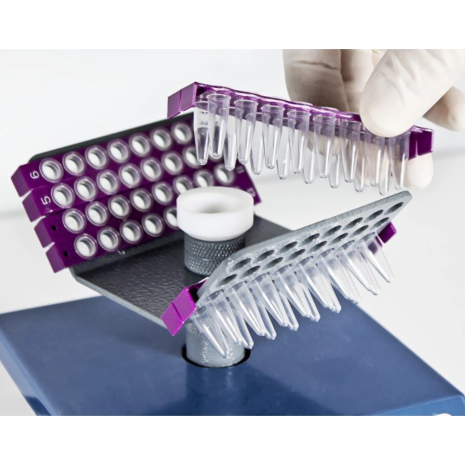 • R-0.5/0.2M – 12 miejsc na probówki o poj. 0,5 ml oraz 12 miejsc na probówki o poj. 0,2 ml.