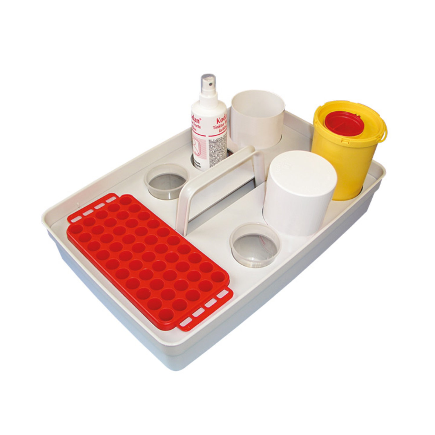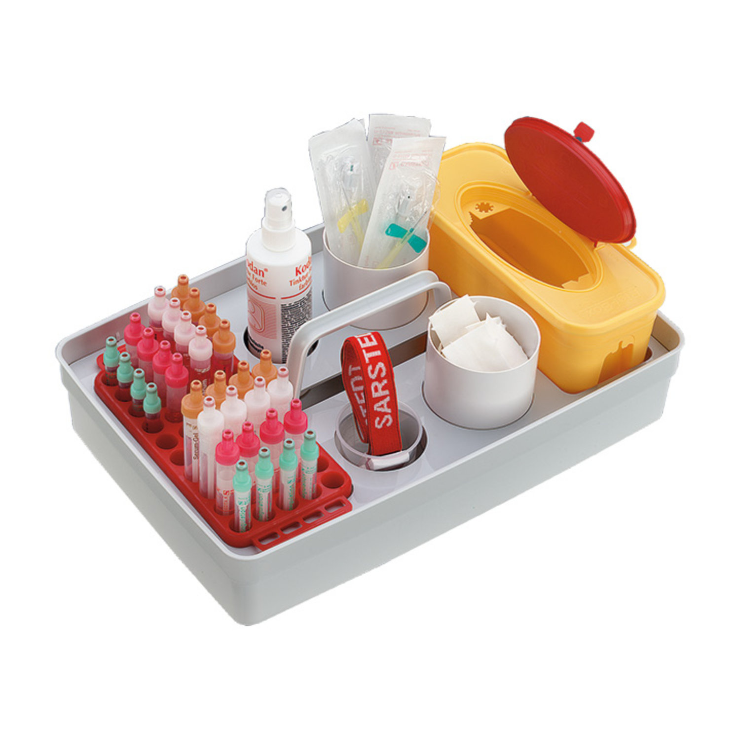 Nosidło Safety Tray ma na celu usprawnienie pracy dzięki odpowiedniej organizacji przedmiotów. Wykonane z polipropylenu (PP) o wymiarach (dł. x szer. x wys.): 429 x 283 x 80 mm. Z odpowiednio dobraną, dopasowaną wkładką (PP) o długości 420 mm i szerokości 272 mm, identyfikuje przestrzenie dla określonych elementów. Pozwala w sposób przejrzysty i bezpieczny przechowywać i przenosić podręczne przedmioty. Do tacy transportowej Safety Tray opracowano pięć wersji wkładek dostosowanych do różnych wymagań np. pobierania i transportu próbek krwi.