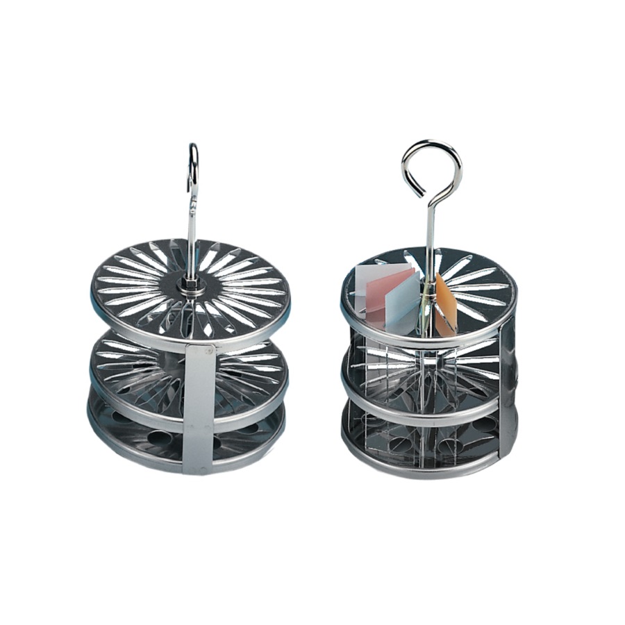Wykorzystywany zwłaszcza w histologii do czystego i szybkiego barwienia szkiełek podstawowych o rozmiarach standardowych 76 x 26 mm. Szkiełka podstawowe należy włożyć pionowo w otwory i zanurzyć w kąpiel barwiącą. Specjalny uchwyt umożliwia łatwe utrzymywanie statywu na określonej wysokości. Statyw zajmuje niewiele miejsca i nadaje się do zastosowania w okrągłych naczyniach.