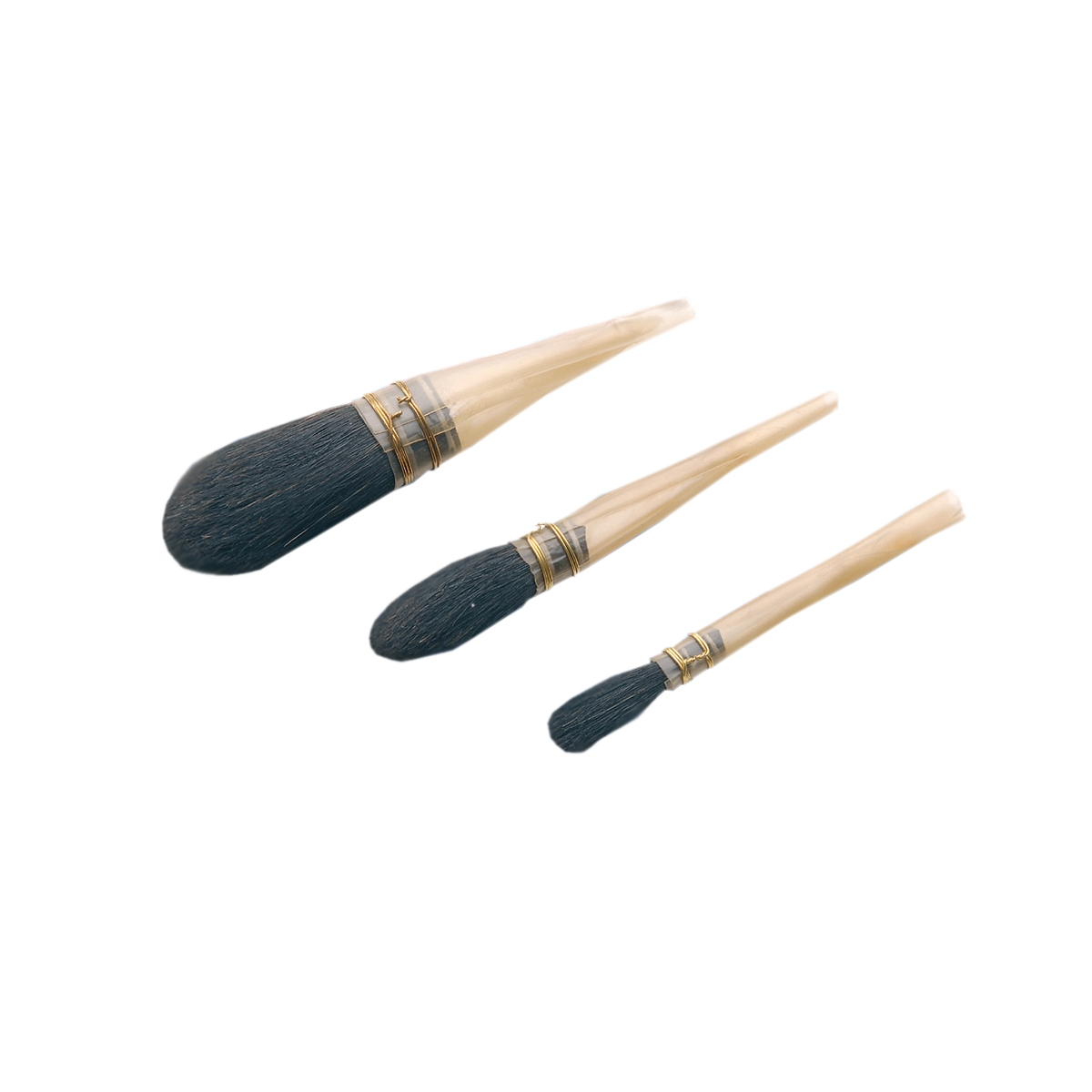Szpiczasty kształt. Delikatne włosie. Przeznaczone do usuwania pozostałości pyłu i proszku z naczynek wagowych.