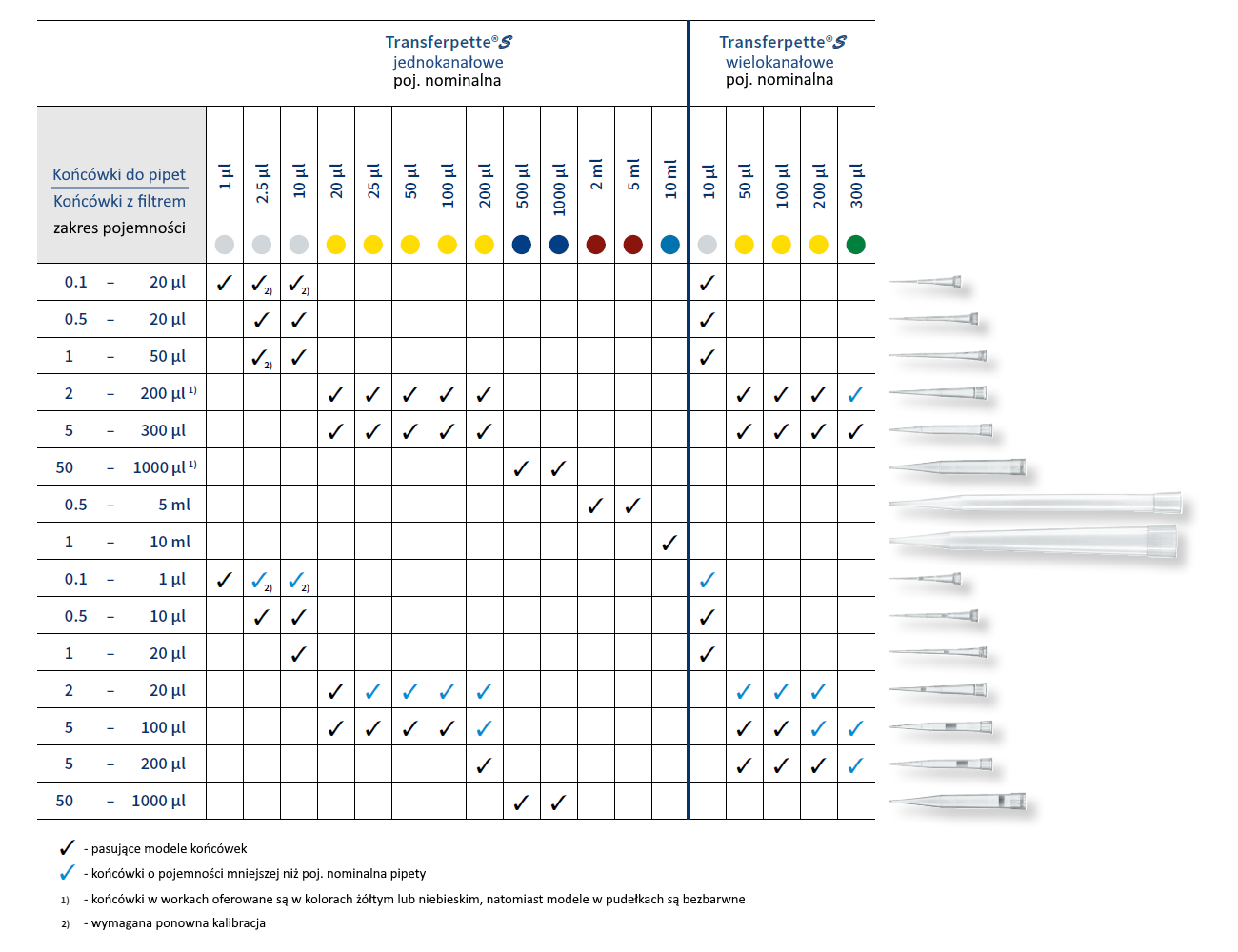 - pipety dostępne w 5 modelach z zakresem pojemności od 0,5 µl do 300 µl,
