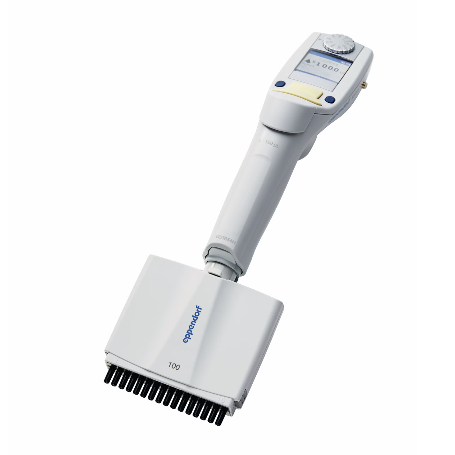 Pipety elektroniczne Eppendorf Xplorer® plus 16- oraz 24-kanałowe zostały zaprojektowane do pracy z mikropłytkami 384-dołkowymi. Serię tą wyróżnia indywidualne programowanie oraz liczne dodatkowe funkcje, np.: autodozowanie (Ads), dozowanie (Dis), pipetowanie (Pip), pipetowanie i mieszanie (P/M), pipetowanie manualne (Man), multipobieranie (SPC), rozcieńczanie (Spc), pipetowanie sekwencyjne (Spc), dozowanie sekwencyjne (Spc), pipetowanie odwrotne (Spc), programowanie (Prg), stała objętość (Fix).