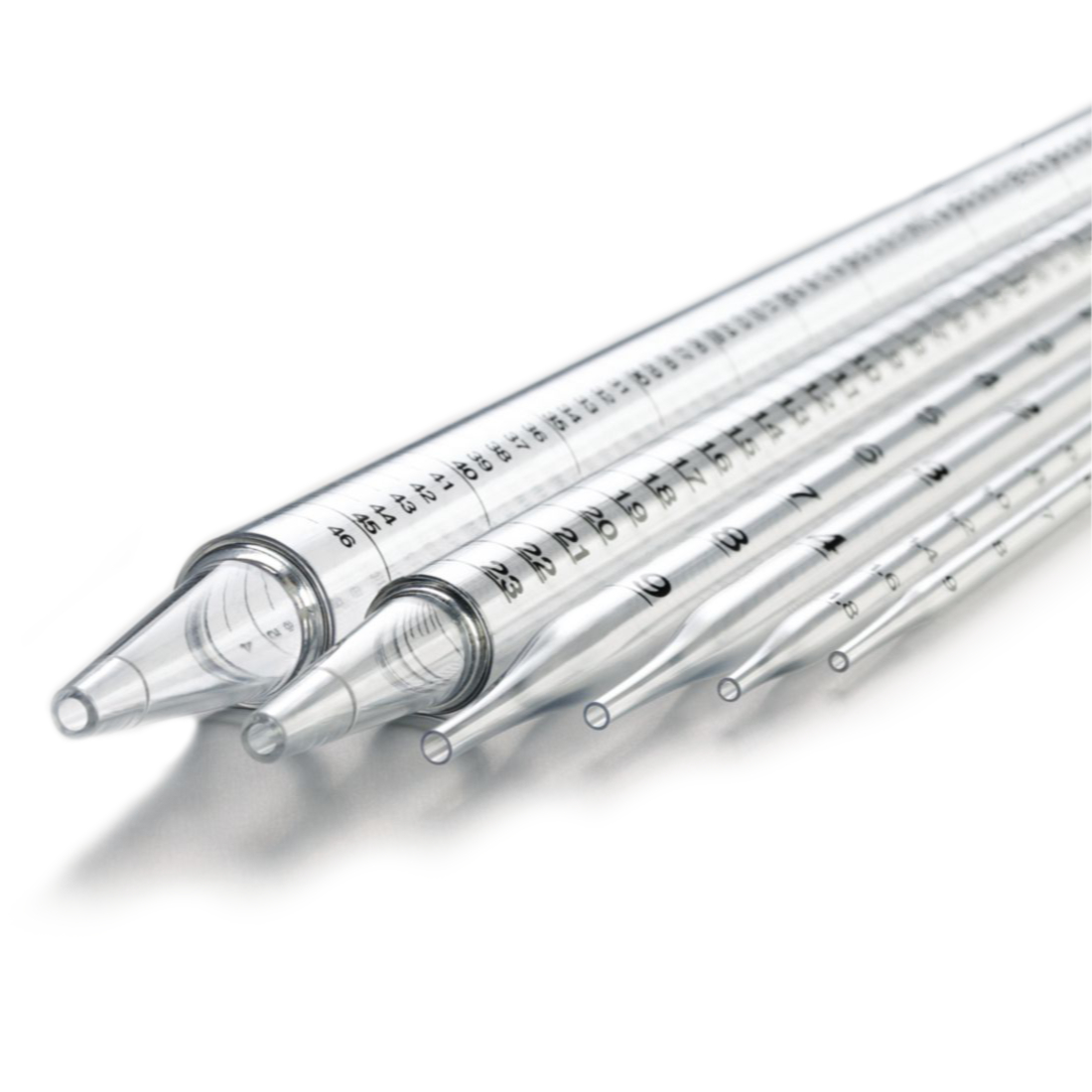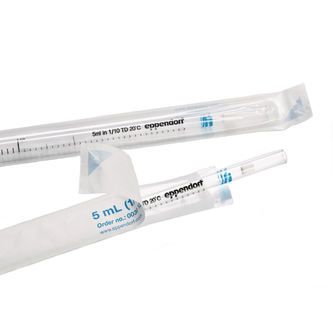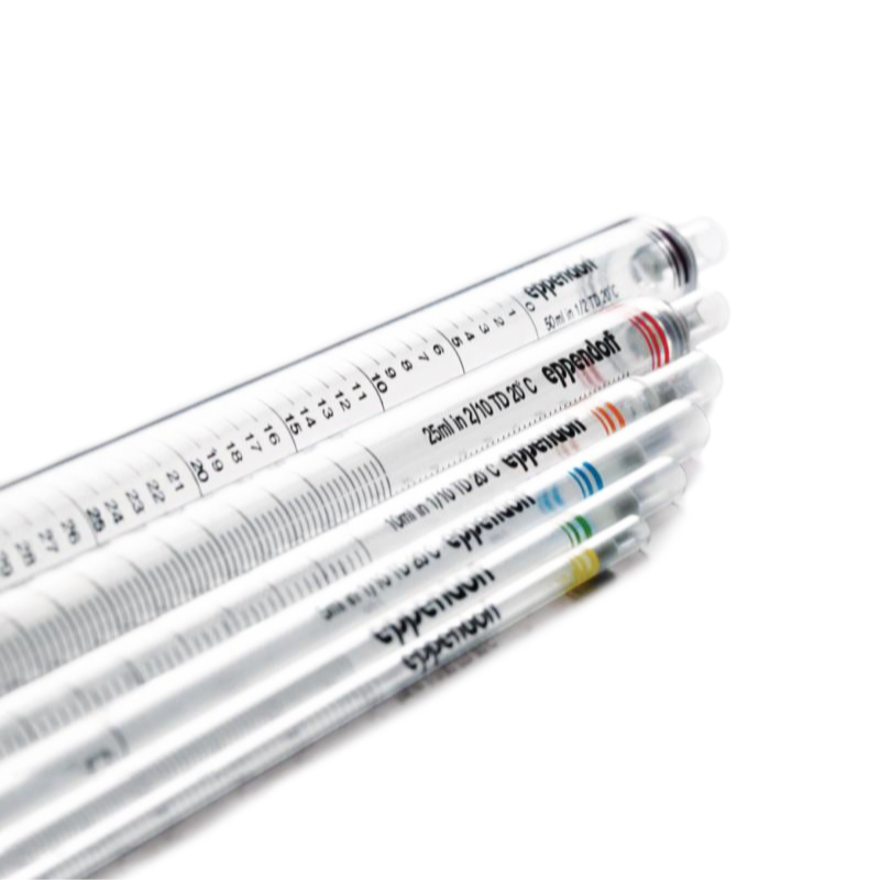 Pipety serologiczne firmy Eppendorf. Wykonane z ultraprzejrzystego polistyrenu. Wyraźna skala bardzo precyzyjnie wskazuje pobieraną objętość. Kodowane kolorystycznie, co pozwala na łatwą identyfikację pipety. Pakowane pojedynczo w pudełka z podajnikiem. Sterylne. Wolne od pirogenów DNA, RNaz, DNaz.