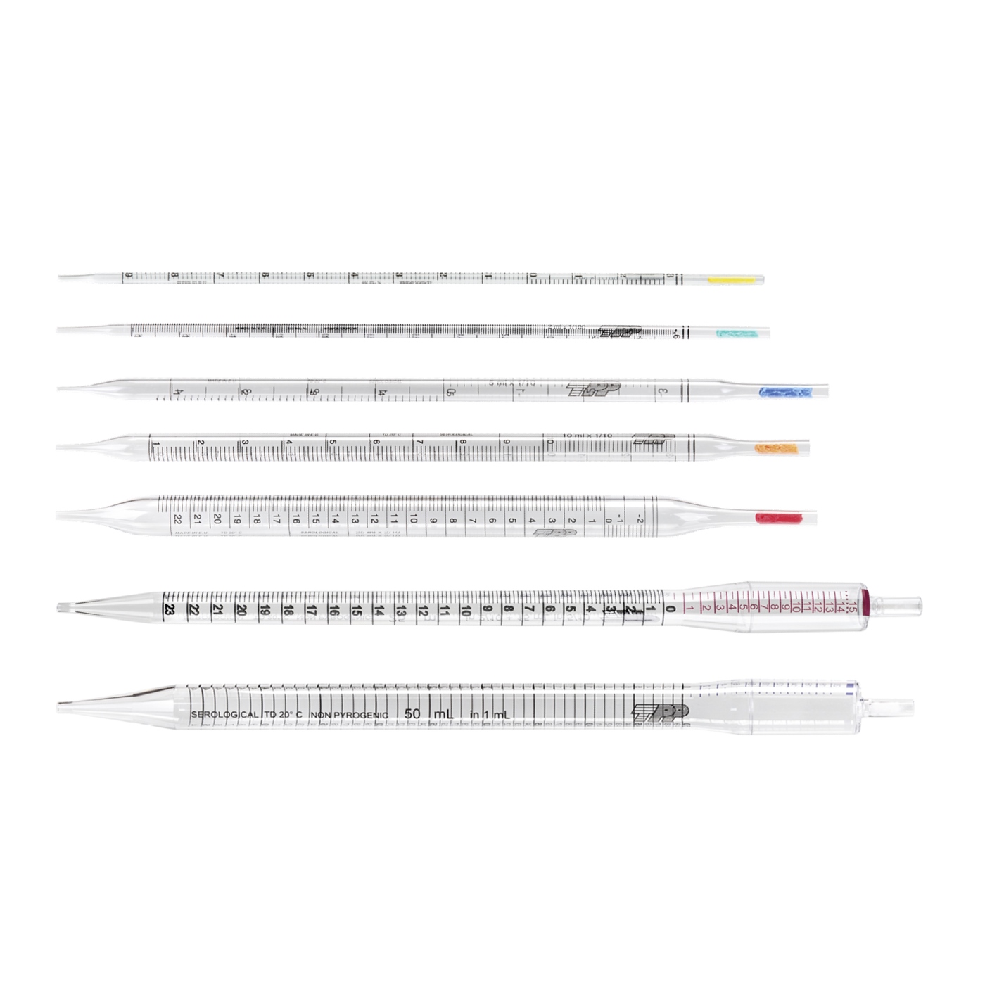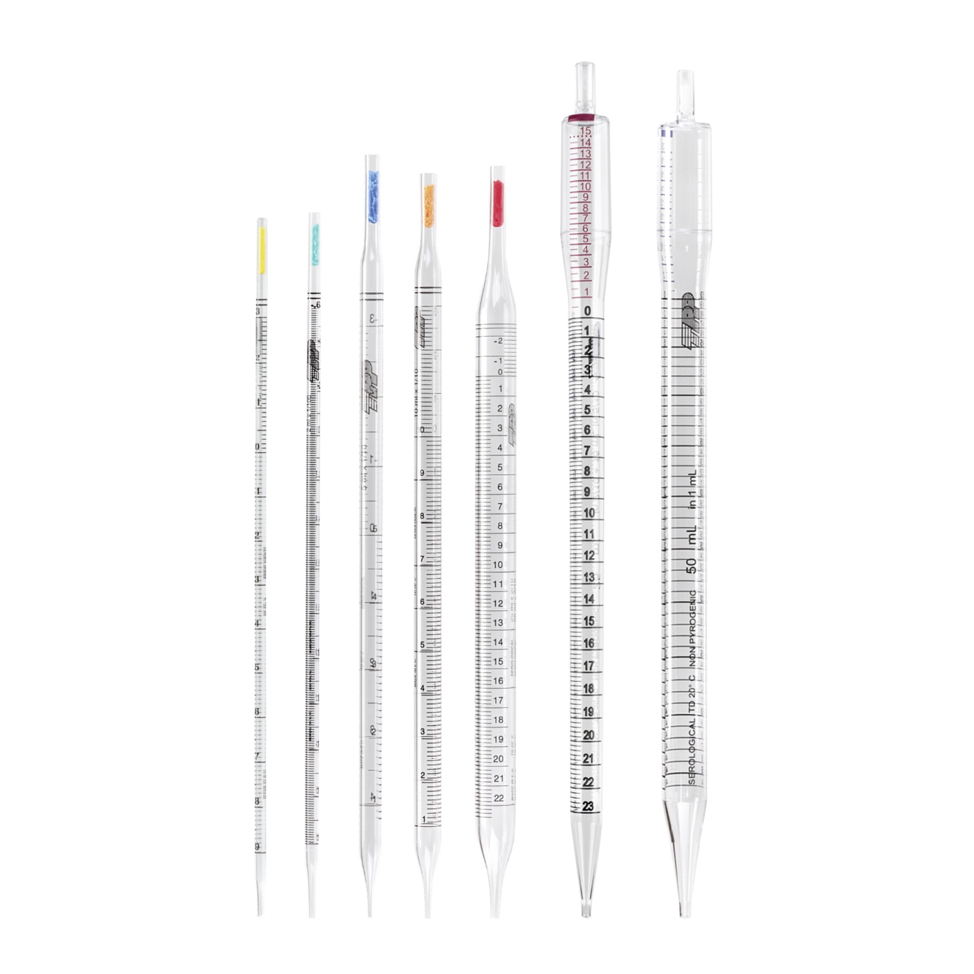 Wysokiej jakości pipety serologiczne szwajcarskiej firmy TPP. Wykonane z polistyrenu. Posiadają wyraźną, dwukierunkową skalę oraz zatyczkę z bawełnianej waty. Końcówki są kodowane kolorystycznie, co uniemożliwia omyłkowe zastosowanie pipety o niewłaściwej pojemności. Pipety są niecytotoksyczne, niepirogenne i niehemolityczne. Wolne od DNaz, RNaz, DNA i RNA, o minimalnym, zdefiniowanym stężeniu endotoksyn. Sterylne. Pakowane indywidualnie w wygodne opakowania typu blister. Dostępne również modele ze zbiorniczkiem – o poj. 25 ml ze zbiorniczkiem 15 ml oraz o poj. 50 ml ze zbiorniczkiem 20 ml.