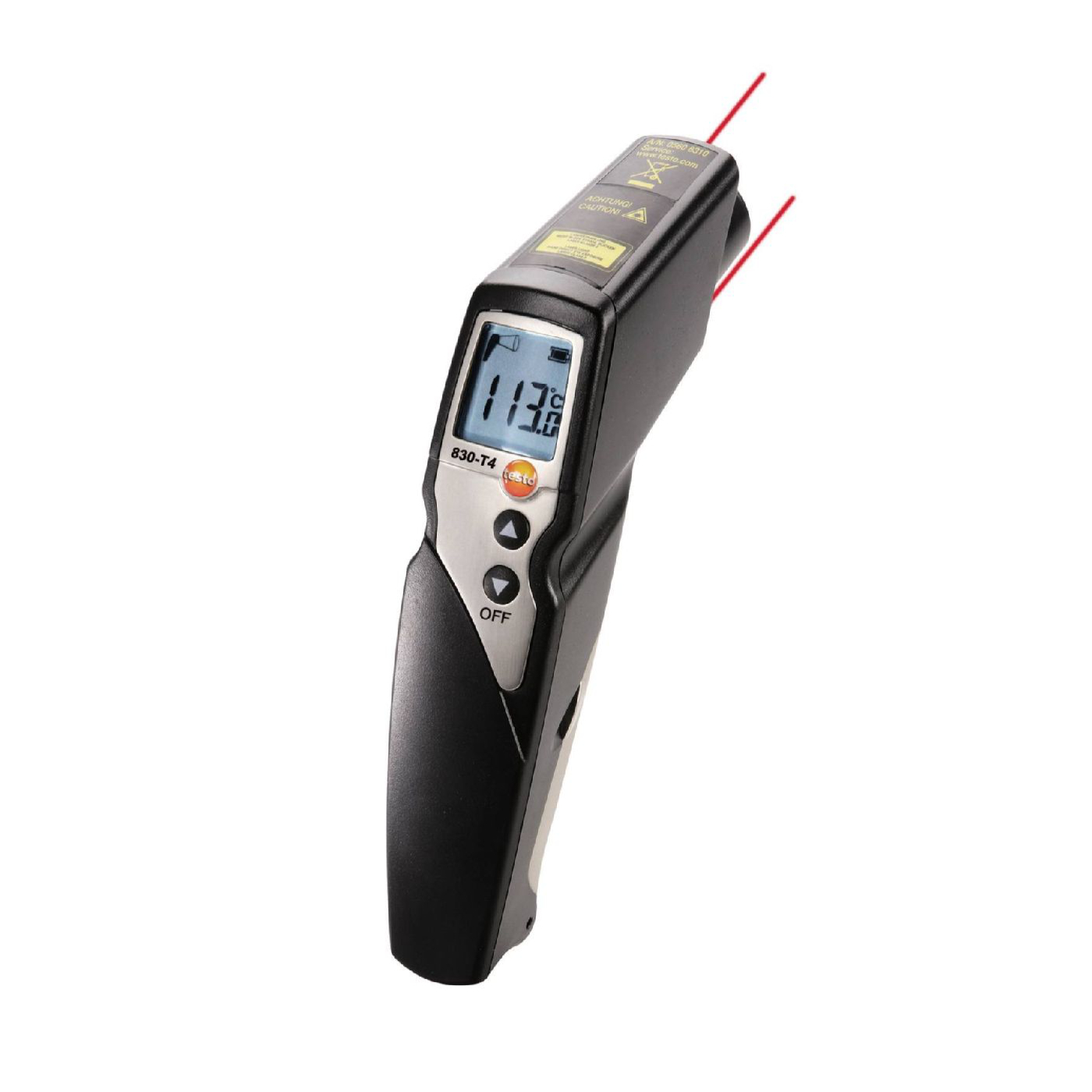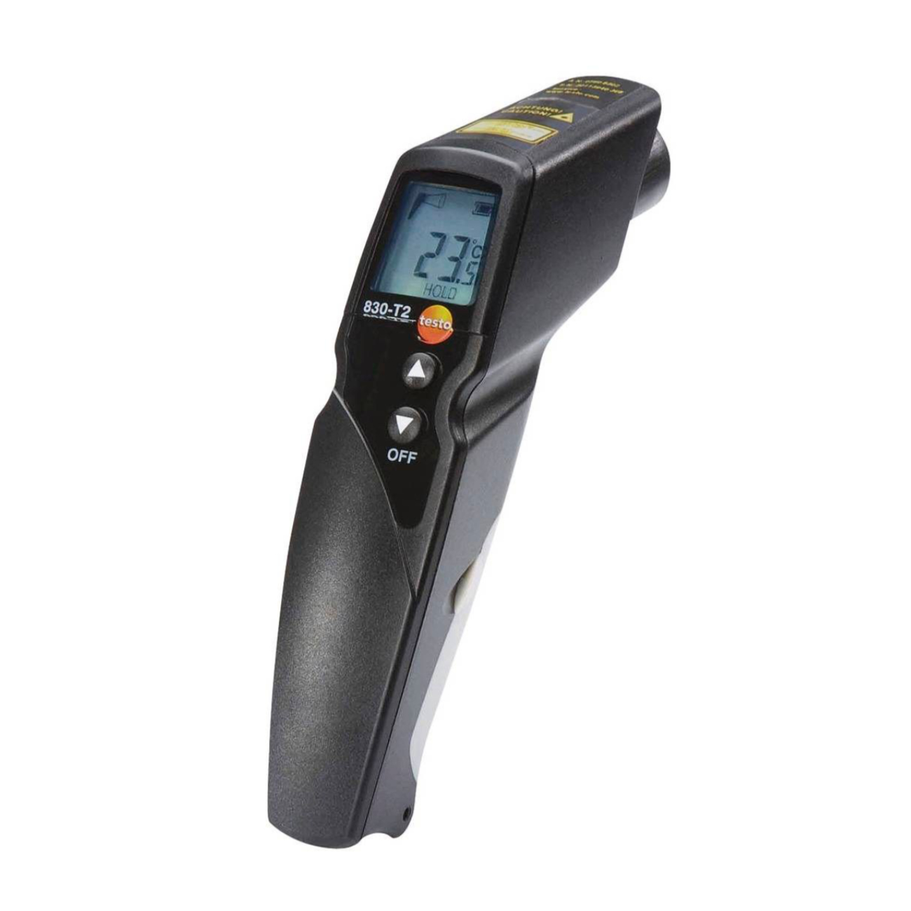 Seria termometrów bezdotykowych działających na podczerwień. Charakteryzują się bardzo szerokim zakresem pomiarowym i ergonomicznym kształtem pistoletu oraz dużym, jasnym wyświetlaczem LCD. Regulowana emisyjność pozwala na dostosowanie parametrów urządzenia do rodzaju i struktury badanego materiału. Pirometry z serii Testo 830-T to idealne urządzenie dla sektora budowlanego i przemysłu do precyzyjnych, bezkontaktowych pomiarów na odległość. Pozwalają na pomiar temperatury obiektów małych jak również trudno dostępnych. Co więcej termometry z tej serii cechuje wysoka dokładność pomiarów dzięki zastosowaniu nowoczesnego procesora o wysokiej rozdzielczości. Użytkownik ma możliwość zaprogramowania temperatur granicznych dzięki funkcji max/min. O ich przekroczeniu sygnalizuje alarm dźwiękowy i optyczny.