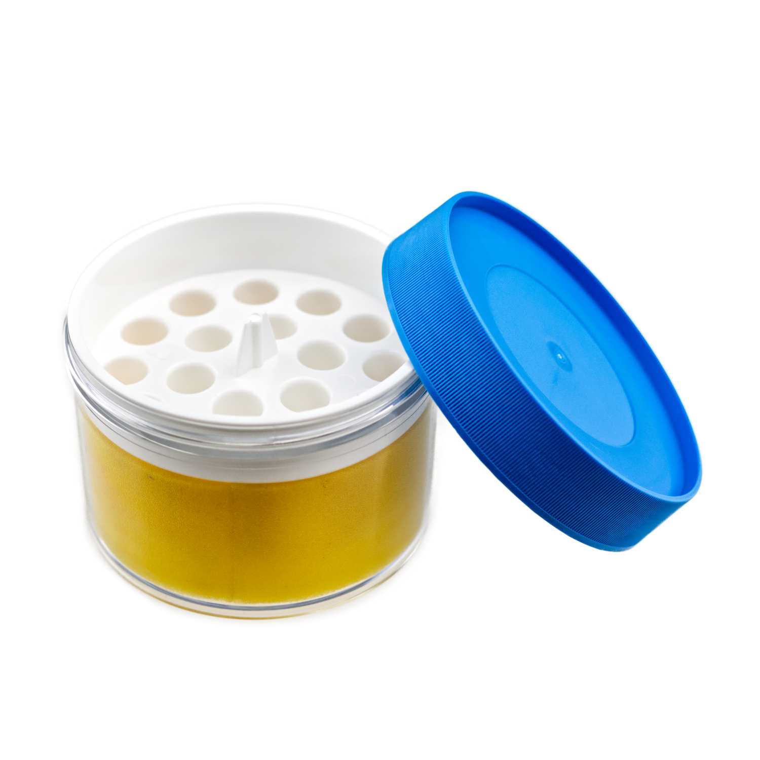 Poliwęglanowy pojemnik do zamrażania na 18 krioprobówek.