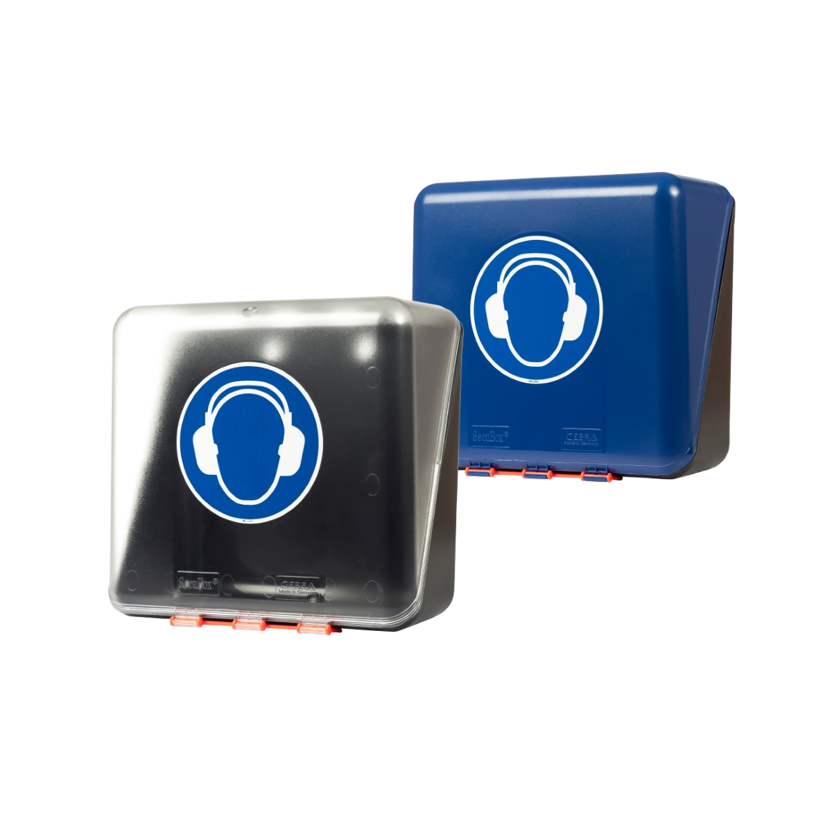 Pojemnik do przechowywania nauszników ochronnych. Oznaczony międzynarodowym symbolem wg VGB 125. Chroni przed kurzem i wodą rozpryskową. Łatwy montaż poprzez przyklejenie lub przymocowanie śrubami. Elementy montażowe w zakresie dostawy. Szybka i prosta obsługa.