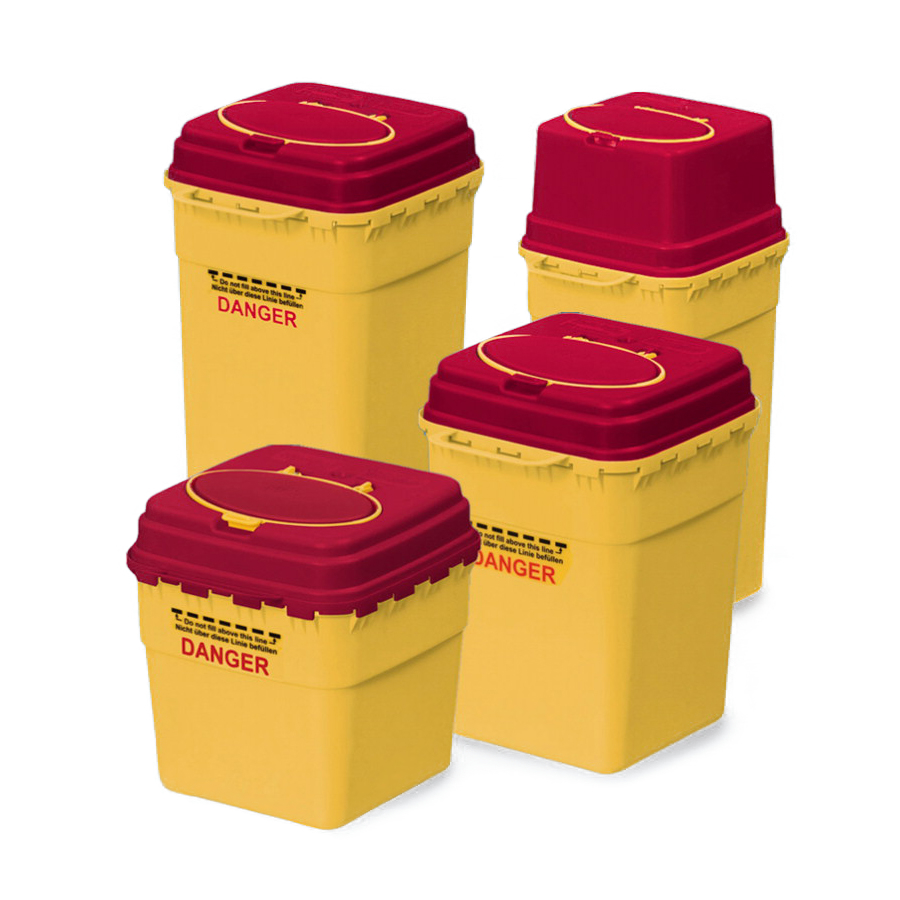 Wytrzymałe pojemniki Multi-Safe euroMatic® o kwadratowej podstawie, wykonane z żółtego polipropylenu (PP) z czerwoną pokrywą. Przeznaczone do utylizacji odpadów niebezpiecznych, również spiczastych i ostrych np. igieł, drobnej stłuczki szklanej, skalpeli itp. Czerwona pokrywa o innowacyjnej konstrukcji, zamontowana do pojemnika za pomocą zatrzasków, zapewnia jego optymalną obsługę i bezpieczeństwo. Po naciśnięciu przycisku pokrywka podnosi się automatycznie. Na wytłoczonej etykiecie znajdują się opisy wykonane w języku niemieckim i angielskim oraz ilustracje informujące o niebezpieczeństwie i prawidłowym użytkowaniu pojemnika. Znaczniki maksymalnego poziomu napełnienia pozwalają łatwo określić poziom wypełnienia. Pojemniki Multi-Safe euroMatic® spełniają wymagania TRBA 250, UN 3291, DIN EN ISO 23907.