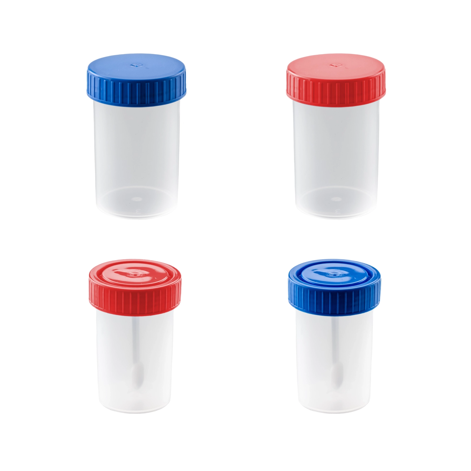 Polipropylenowe, standardowe pojemniki na próbki. Sprzedawane jako sterylne oraz niesterylne, w workach po 100 szt., 500 szt. oraz indywidualnie pakowane w ilości 400 szt.