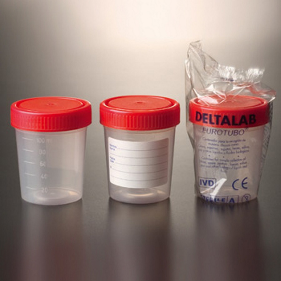 Polipropylenowe, standardowe pojemniki na próbki sterylne lub niesterylne. W komplecie z zakrętkami z PE.