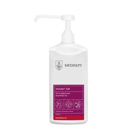 Velodes® Gel to żel przeznaczony do higienicznej i chirurgicznej dezynfekcji rąk. Wykazuje działanie bakteriobójcze, drożdżakobójcze, bójcze wobec prątków gruźlicy i ograniczone wirusobójcze. Działa na wirusy osłonkowe takie jak: Vaccinia, BVDV, HIV, HBV, HCV oraz wirusy Rota i Noro. Łagodny dla dłoni, zawiera substancję pielęgnującą – glicerynę. Dzięki specjalnej formule zapobiega uczuciu lepkości dłoni. Żel przebadany dermatologicznie.