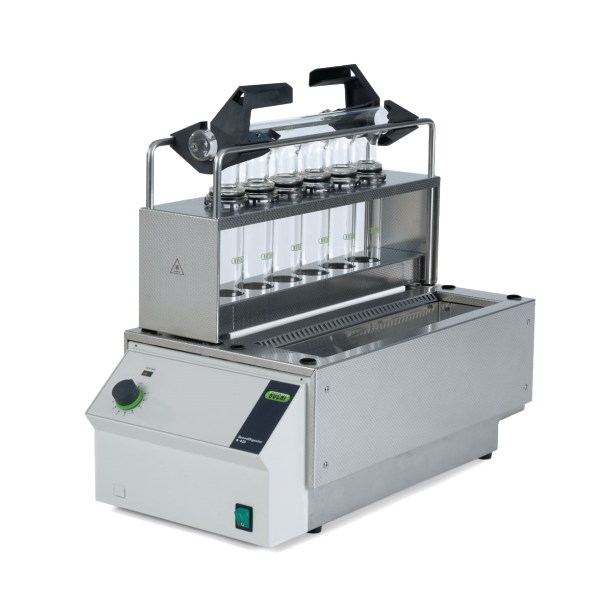 Probówki marki Büchi przeznaczone do metody Kjeldahla. Wykonane ze szkła.