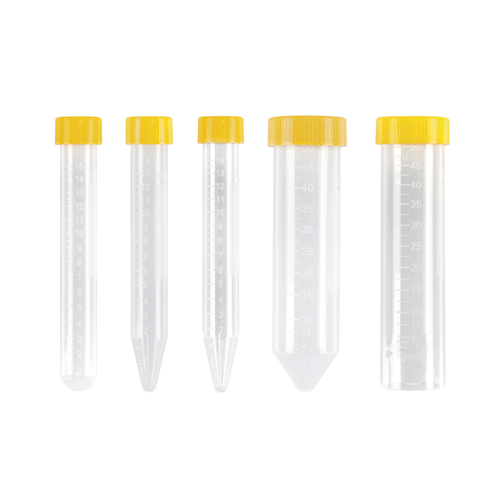 Wysokiej jakości probówki wirówkowe szwajcarskiej firmy TPP. Wykonane z przejrzystego polipropylenu (Nr-art. B-4562 – wykonane z PS). Z gazo- i aerozoszczelną nakrętką. Wyposażone w pole do opisu zarówno na powierzchni probówki, jak i na nakrętce. Z podziałką. Sterylne, wolne od pirogenów, RNA, DNA, RNaz, DNaz. Stężenie endotoksyn gwarantowane na poziomie <0,06 EU/ml.