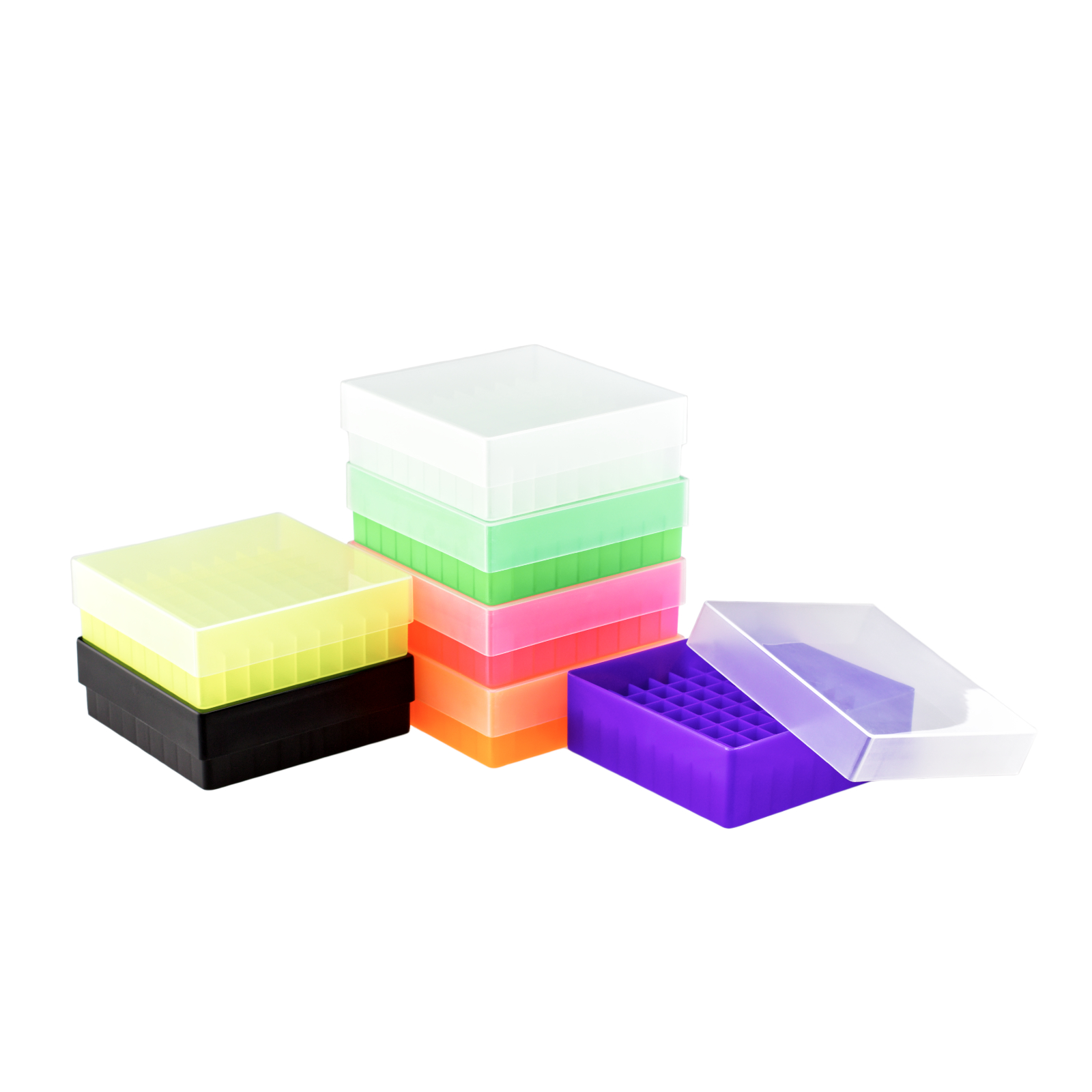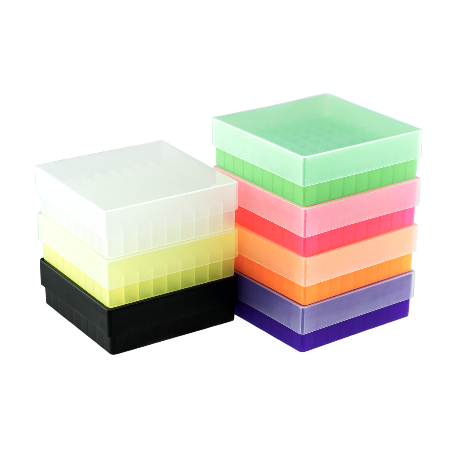 Pudełka 81-miejscowe. Służą do przechowywania probówek o śr. do 12,5 mm.