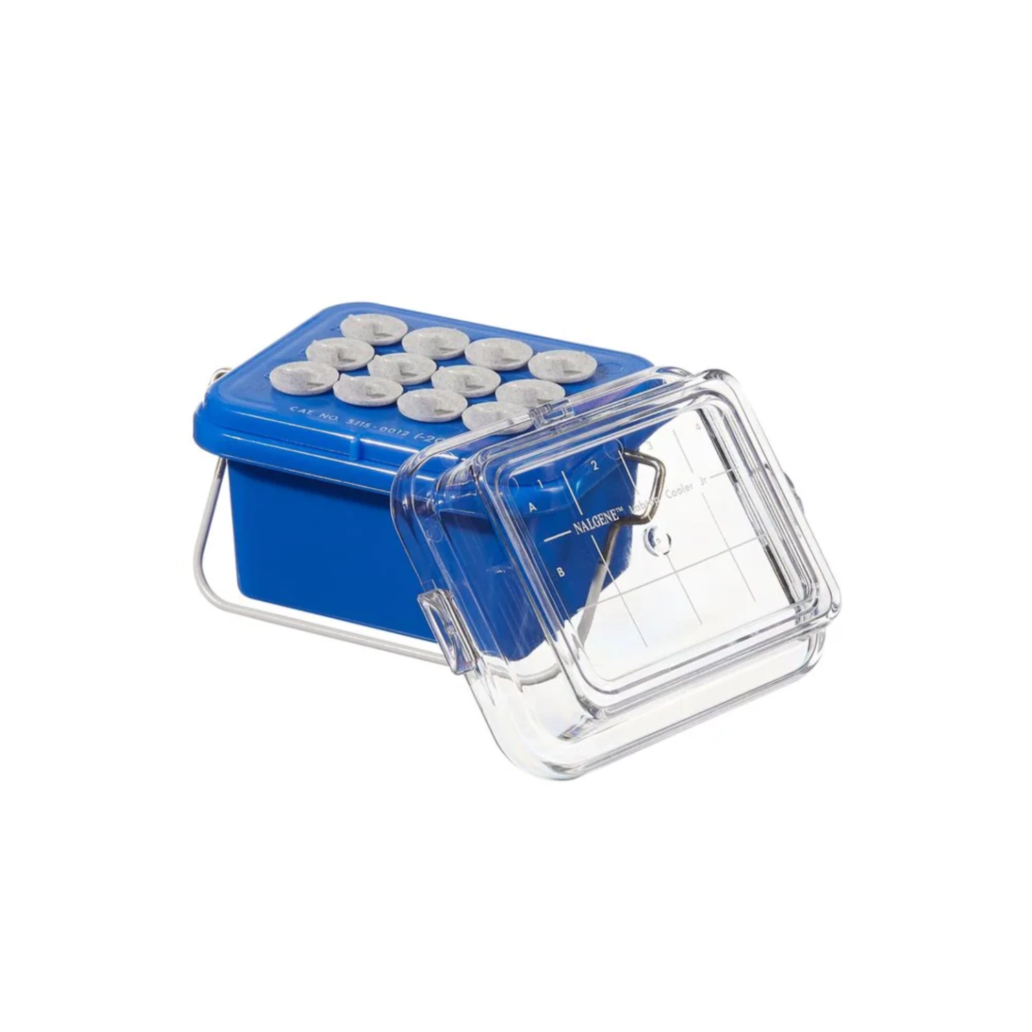 Pudełko do przechowywania i transportu probówek PCR, naczynek reakcyjnych oraz krioprobówek (Nr-Art. 3-6001) w niskich temperaturach. Bench-Cooler może być zamrażany do temperatury -20°C. Po wyjęciu pudełka z zamrażarki przez ok. 2 godz. utrzymuje się temperatura -15°C. Posiada 32 miejsca na probówki o poj. od 0,5 do 2,0 ml oraz krioprobówki. Dla probówek 0,5 ml stosuje się specjalne adaptery (16 szt.). Dolna część pudełka wypełniona jest nietoksycznym żelem. Na pokrywce znajdują się pola do opisu.