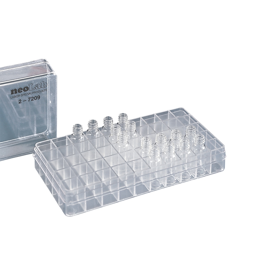 Przeznaczone na naczynka o maks. śr. 12 mm. Rzędy 5 x 10. Z wkładem dzielącym przestrzeń na 50 stanowisk oraz szczelnie zamykającą pokrywką. Nadają się do przechowywania np: